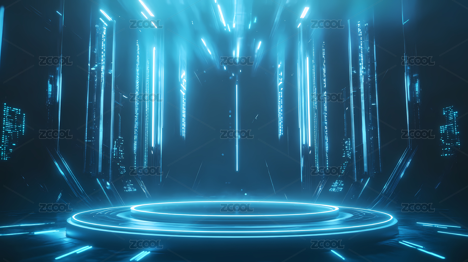 蓝色光柱照亮的神秘空间