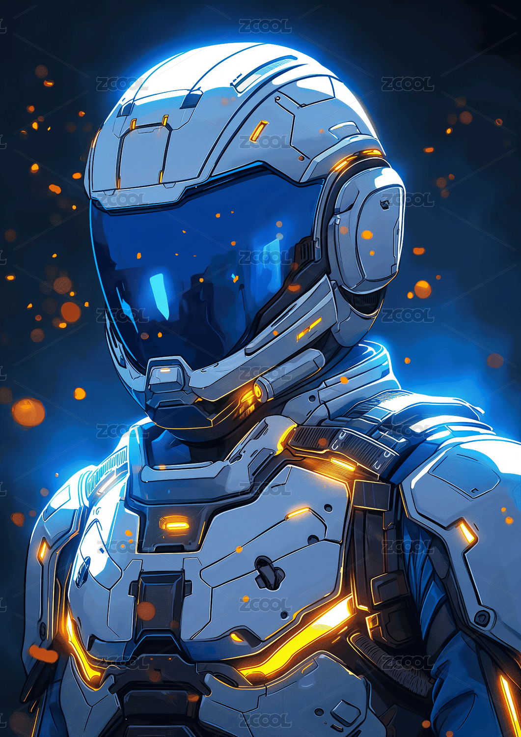 穿着发光盔甲未来派男兵