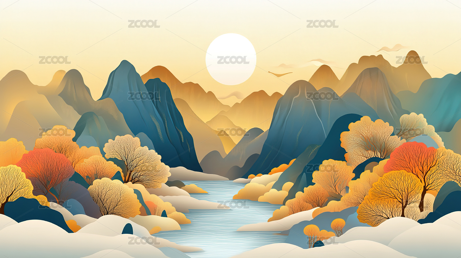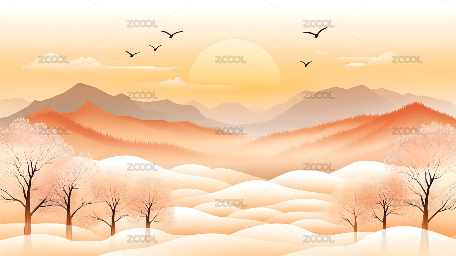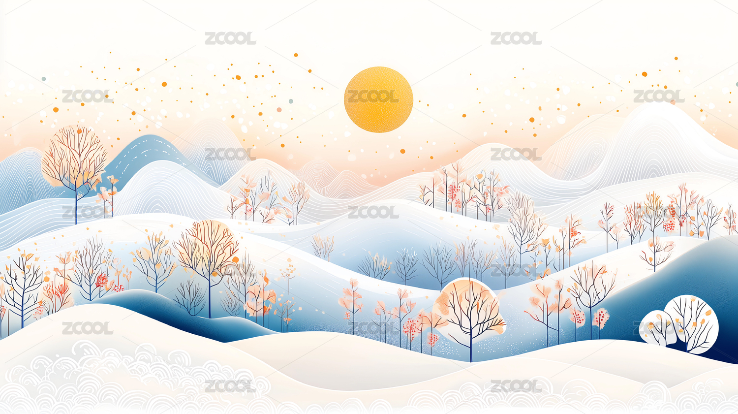 山峦,树木,远山,景色,雪山,冬季,祥和,宁静,雪景,风景