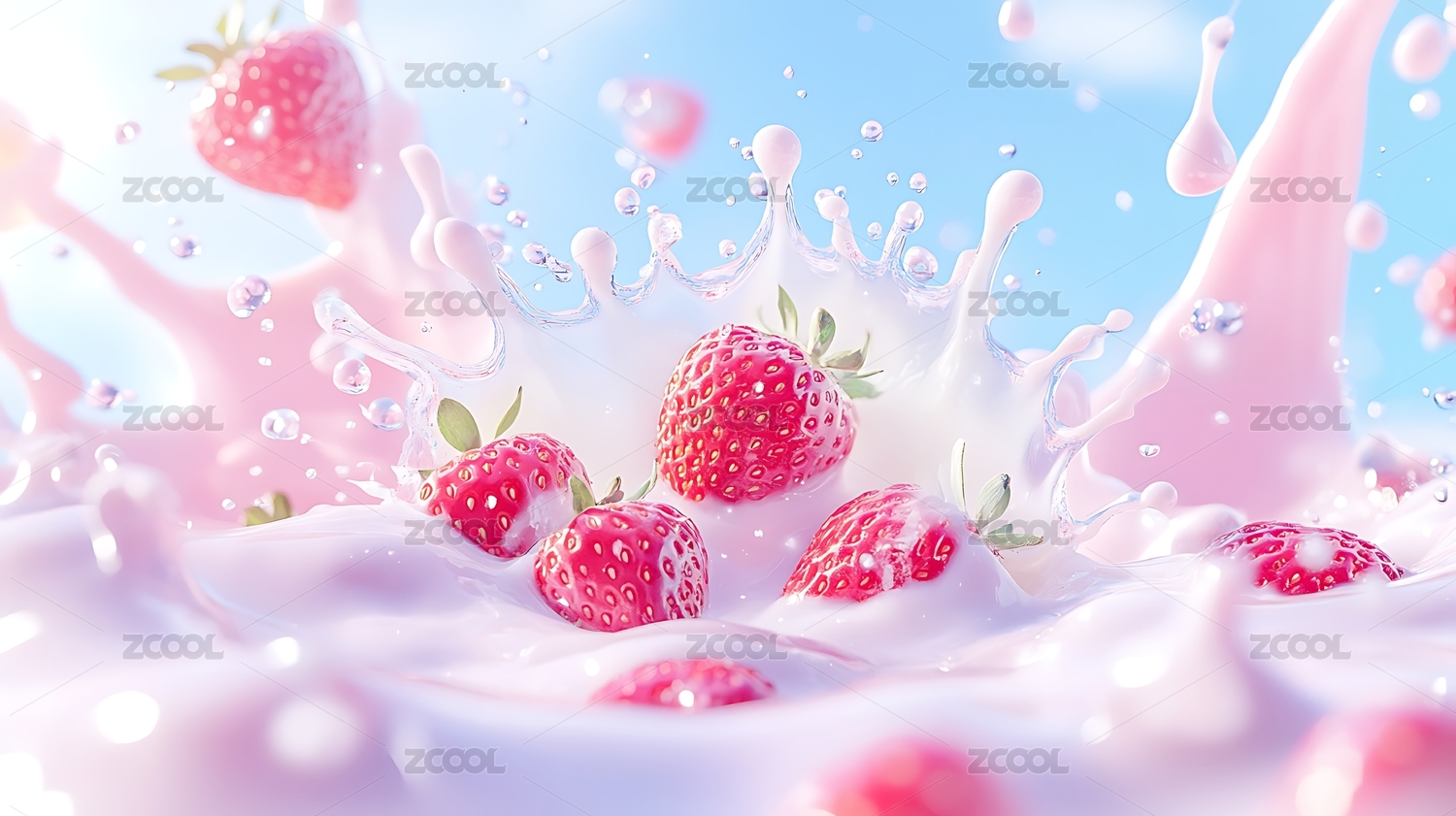 草莓,浆果,粉色,牛奶,飞溅,美食,饮品,甜点,新鲜,健康