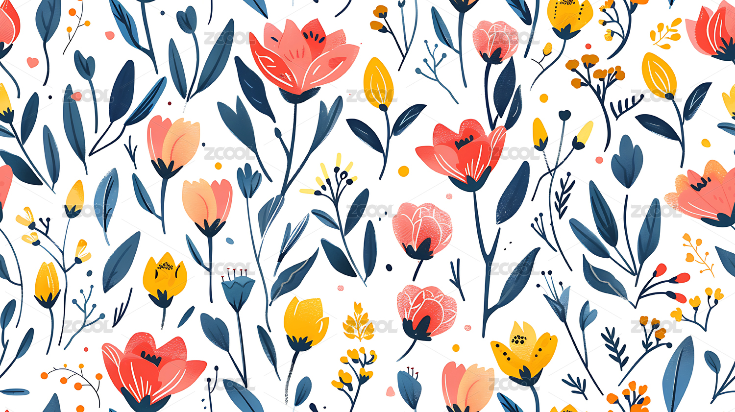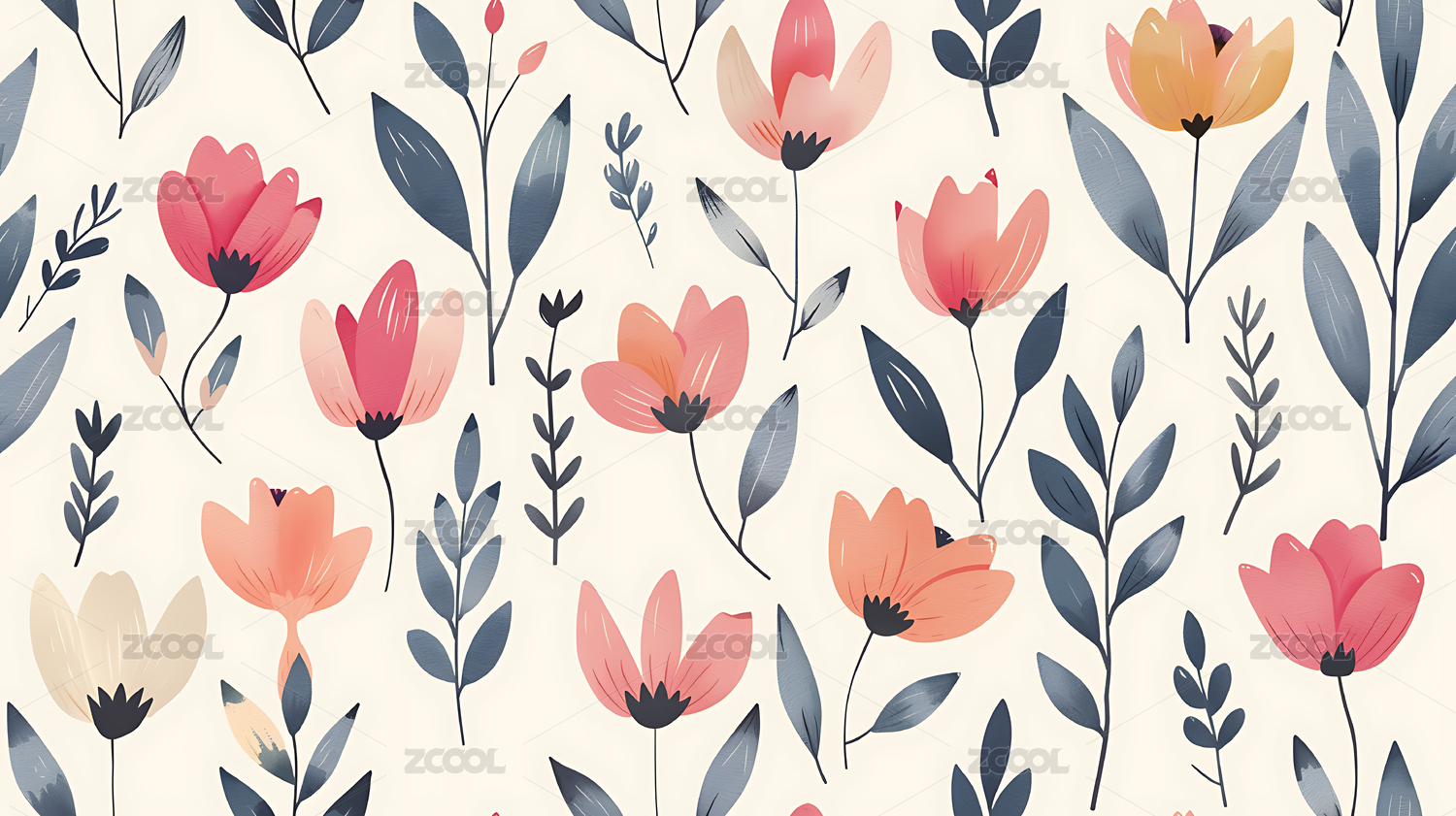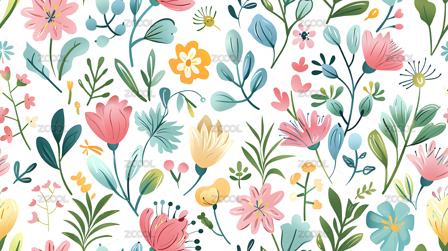 清新花卉植物无缝图案背景