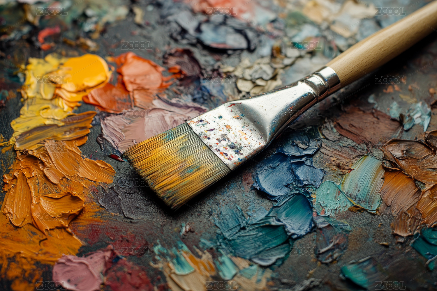 油画笔与调色板细节.