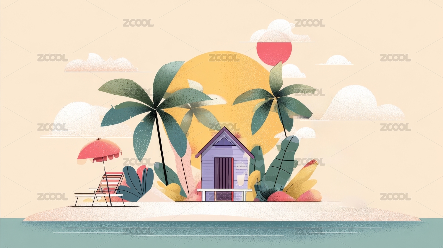 未来,插画,现代,房屋,小屋,热带,海滩,度假,建筑,绘画