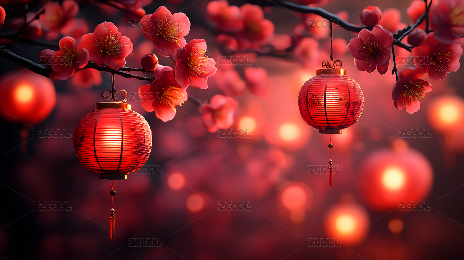 红色灯笼与梅花新年场景