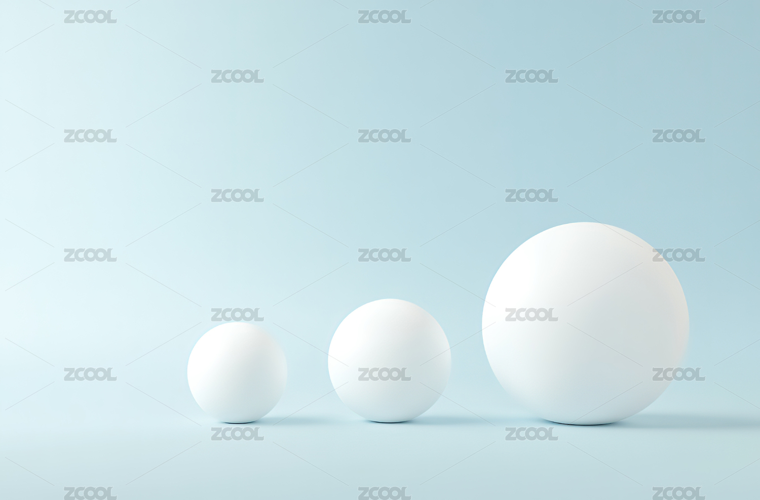 三粒大小不一的白球,3D 渲染图