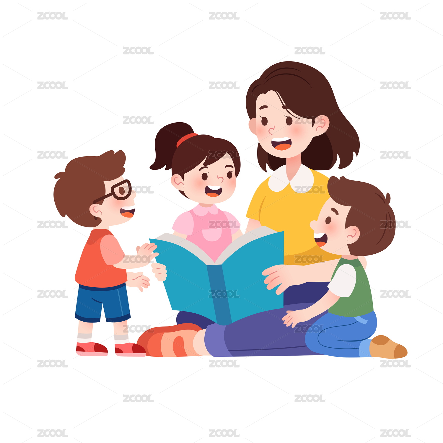 扁平风幼儿园老师课堂讲故事幼教绘本读书