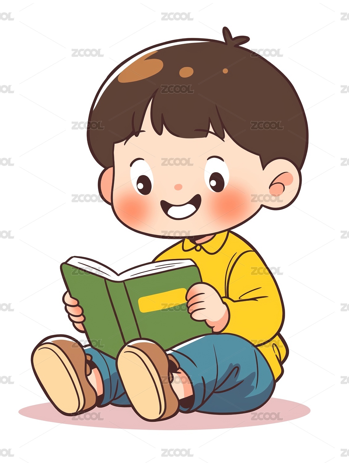 卡通风坐着学习专注阅读的可爱女孩教育插画