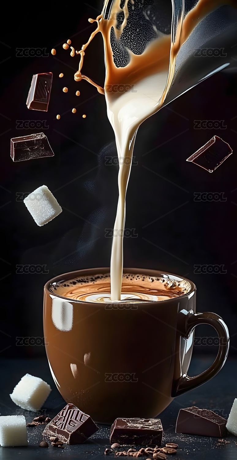 黑色咖啡杯,咖啡液,飞溅效果,动态画面,饮品