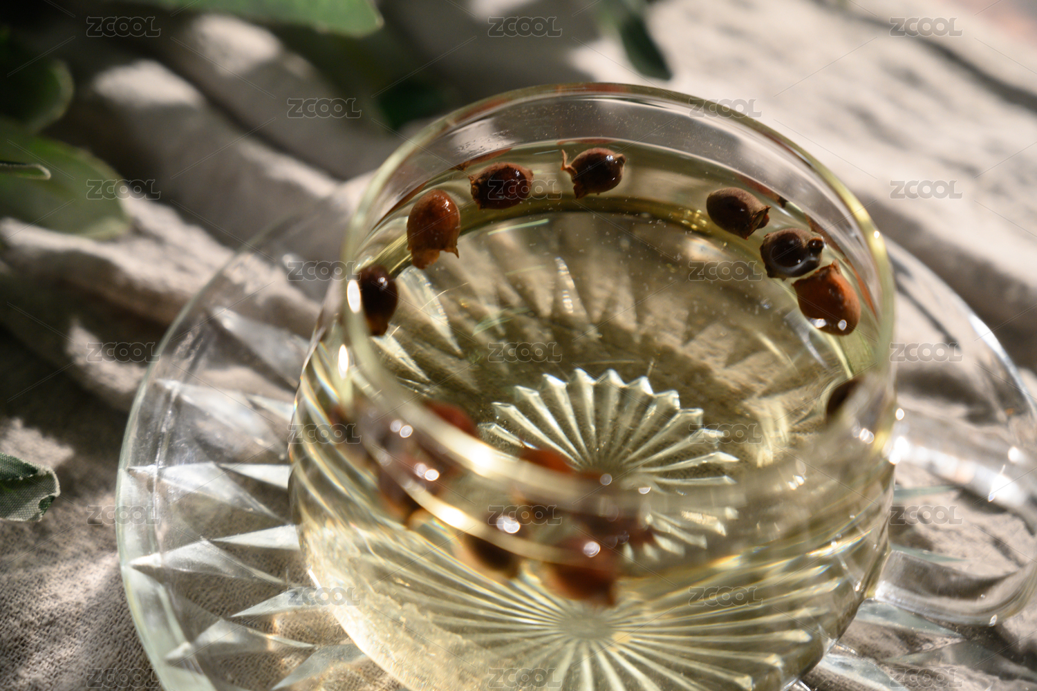 桌面上的杯子里的甘甜可口的辣木籽茶