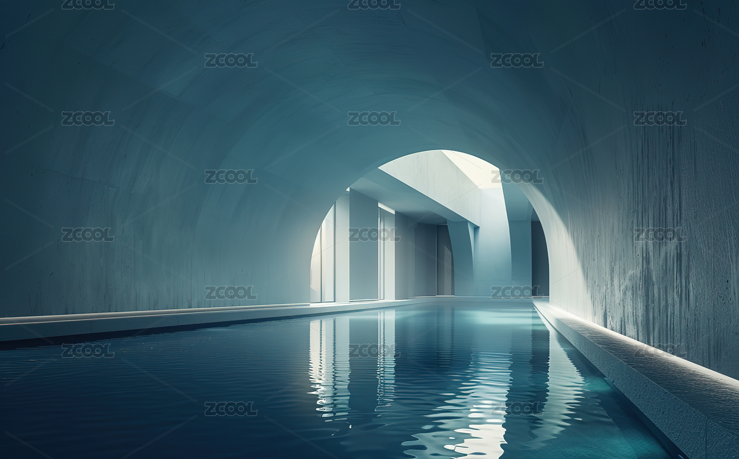 抽象,建筑,设计,现代,曲线,光线,通道,空间,几何,黑白