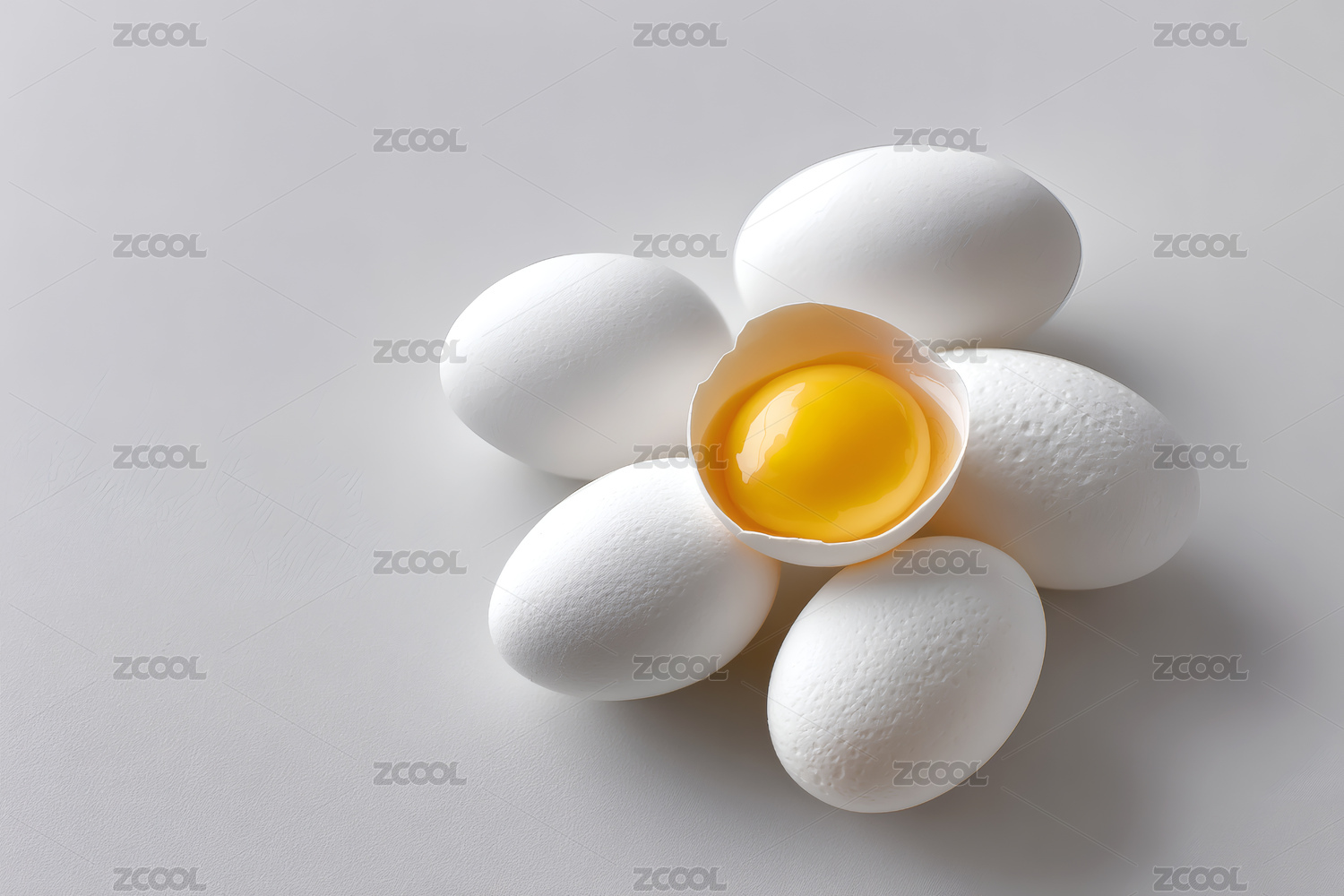 质感,背景,清新,简约,点缀,排列,对比,白鸡蛋,破壳,蛋黄