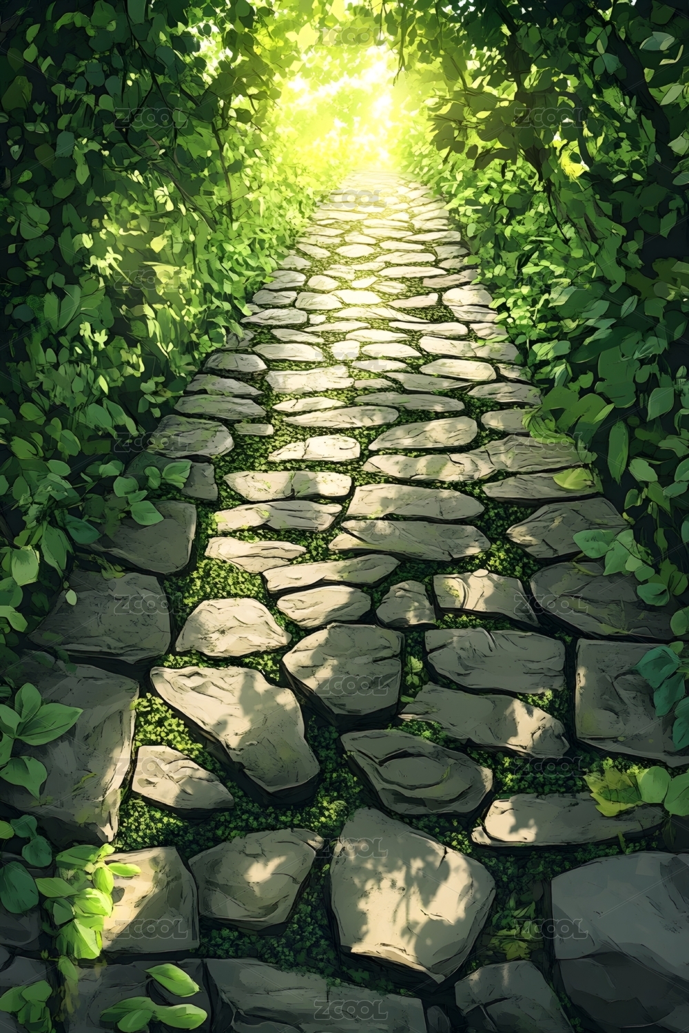 青石小径上的阳光与青苔