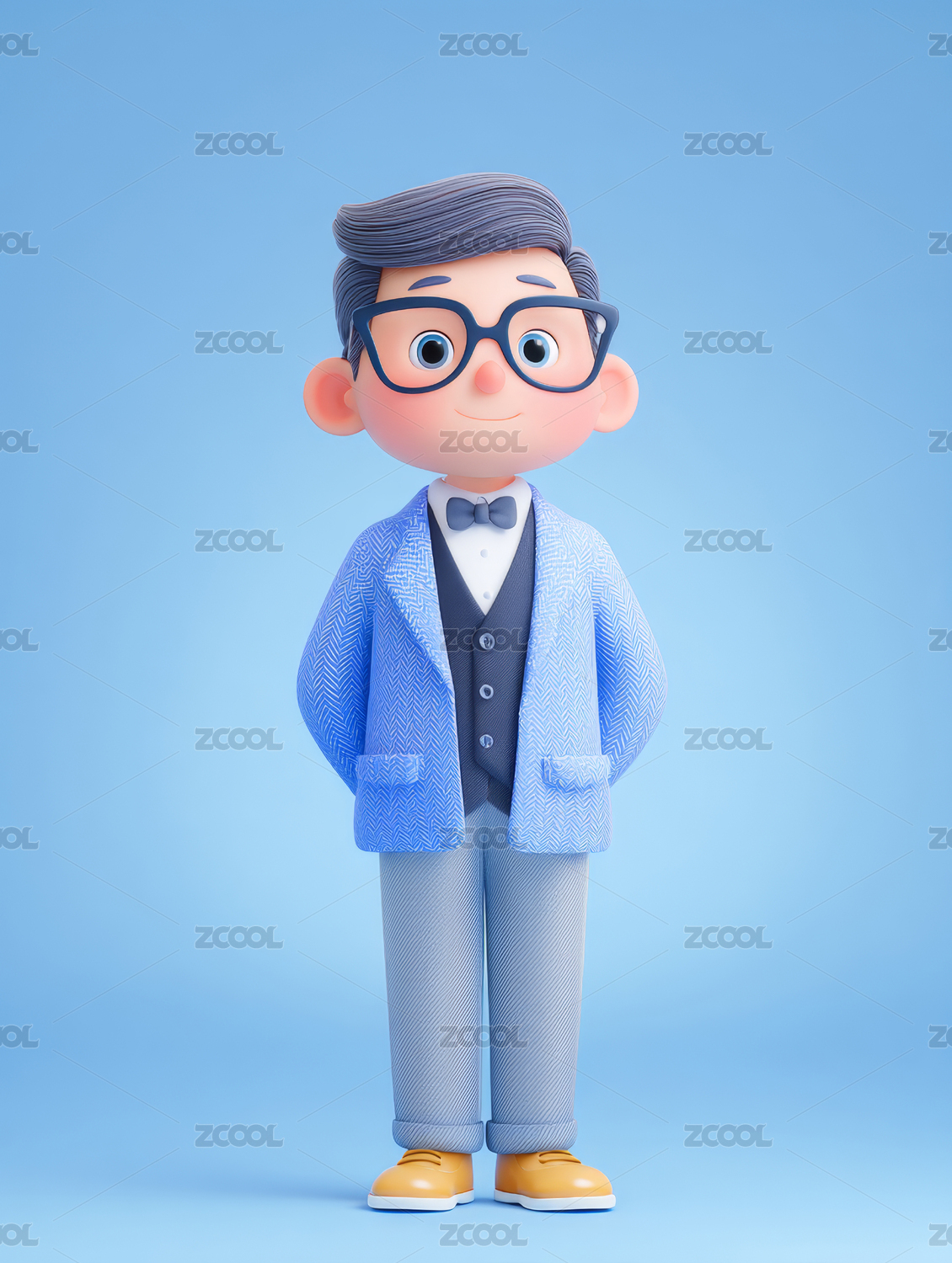 3D渲染可爱卡通戴眼镜的男孩人物插画