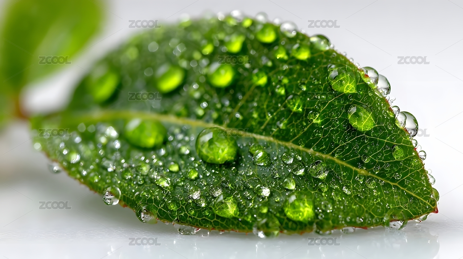晶莹水珠绿色叶子