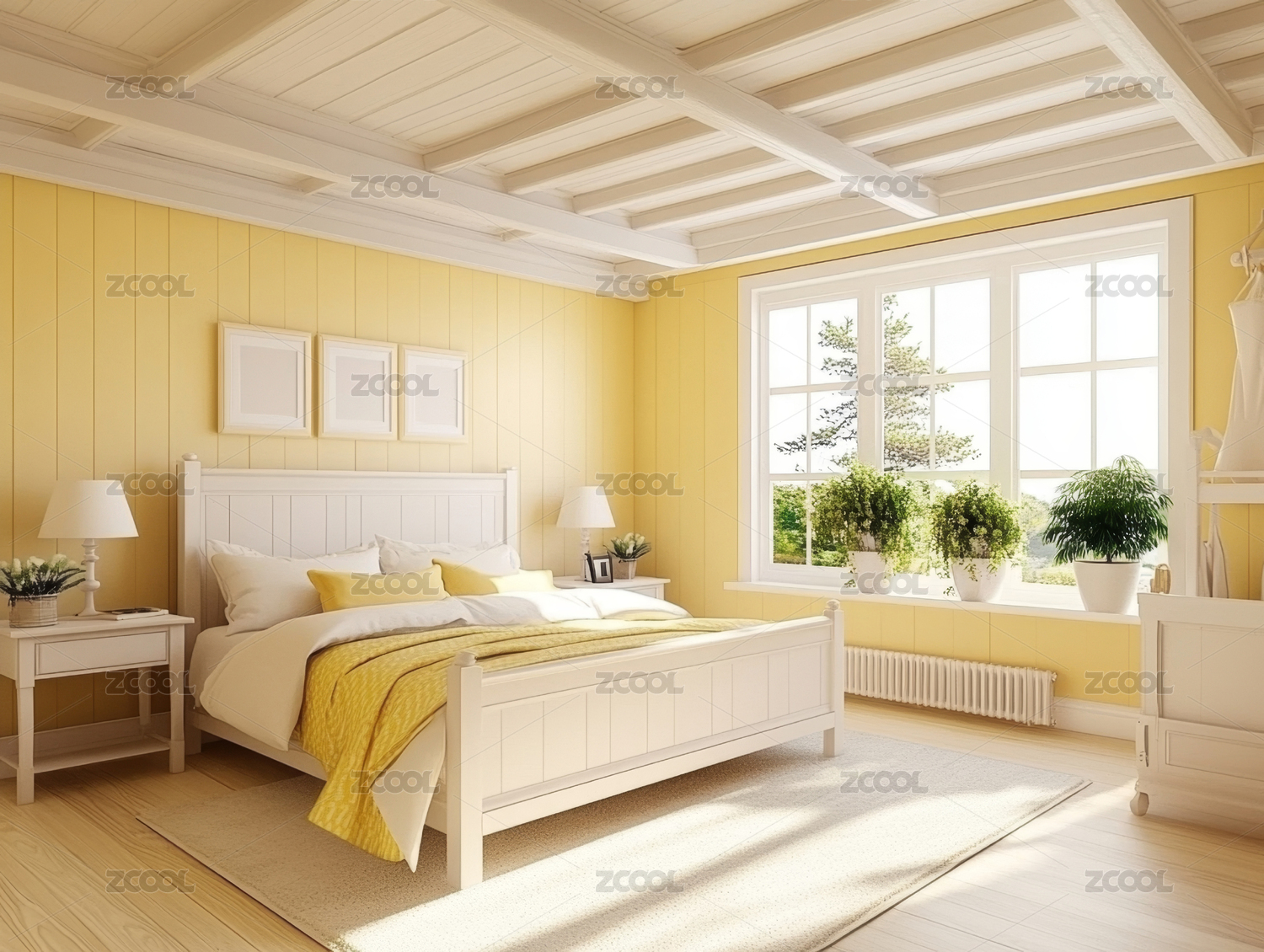 卧室,现代,简约,蓝色,木质,床,窗户,自然光,装饰画,地毯