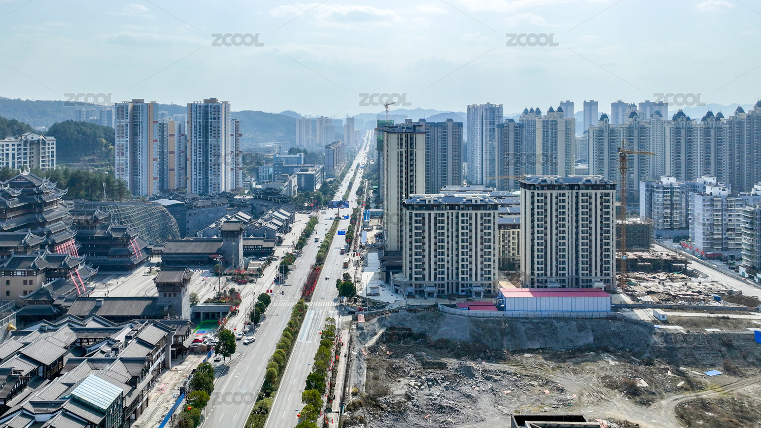 航拍冬季白昼中国广东梅州兴宁现代化城市