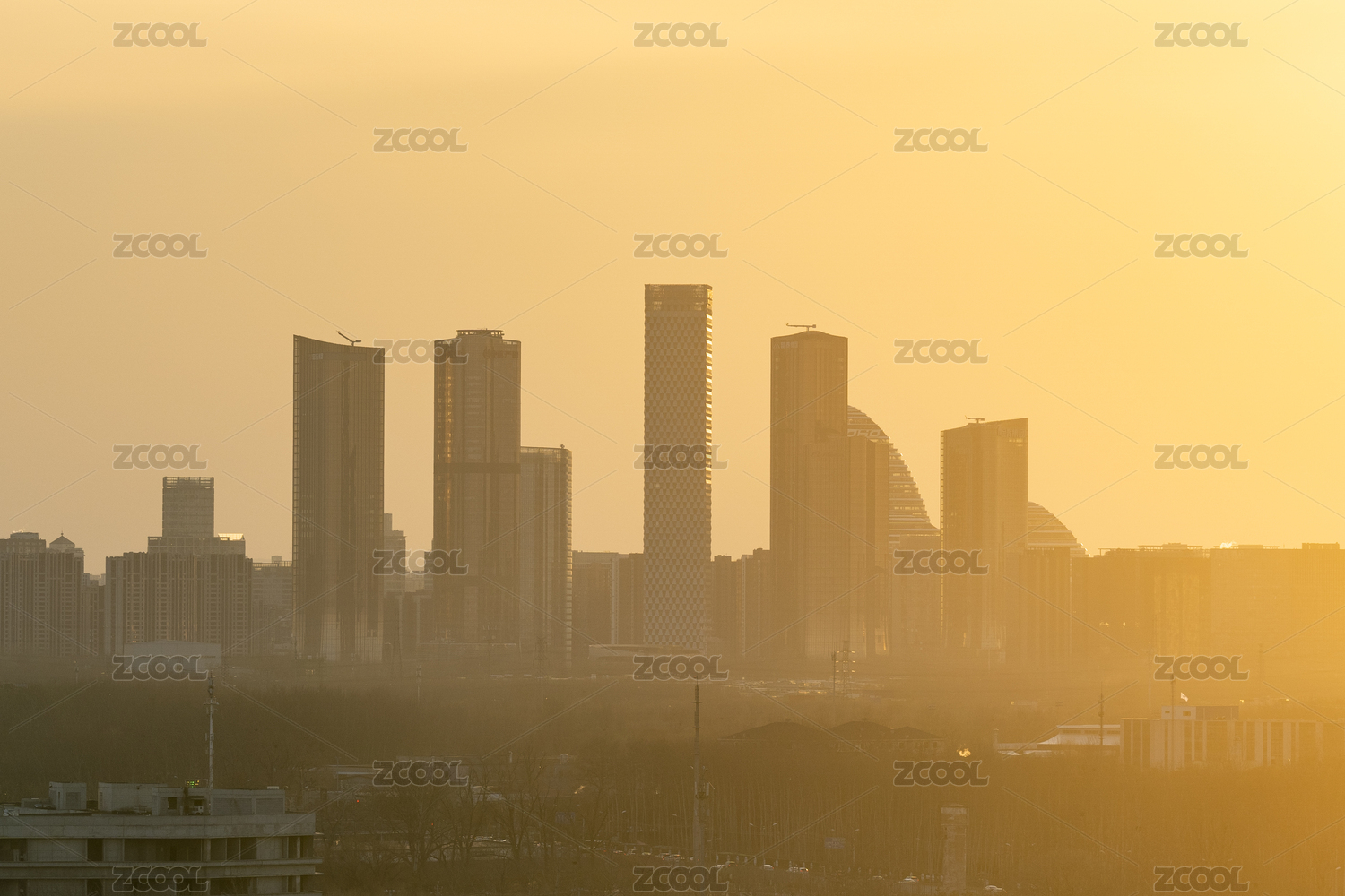 城市,现代,摩天大楼,城市天际线,建筑,都市风景,市区,北京,日出,暖调