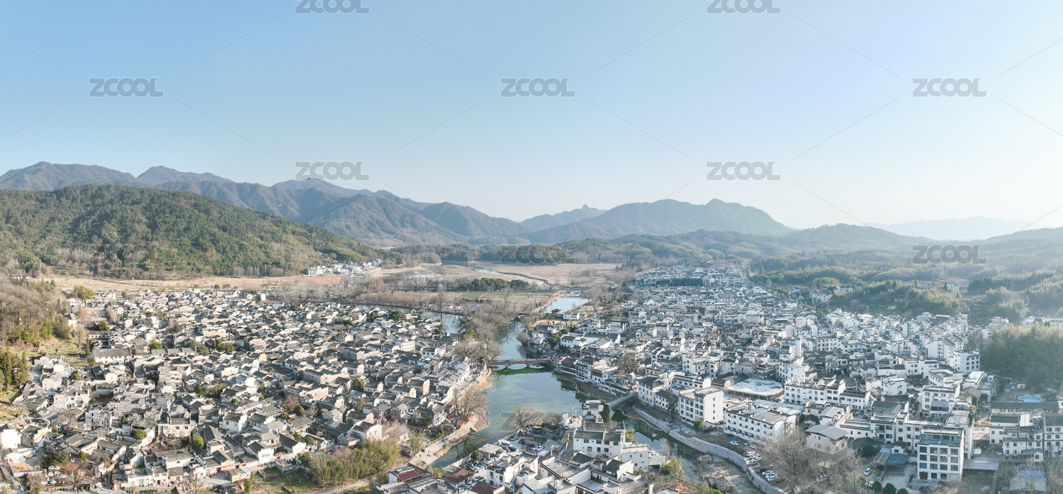 安徽,黄山,宏村,古村落,航拍,风景,徽派建筑,徽州,白墙黛瓦,马头墙