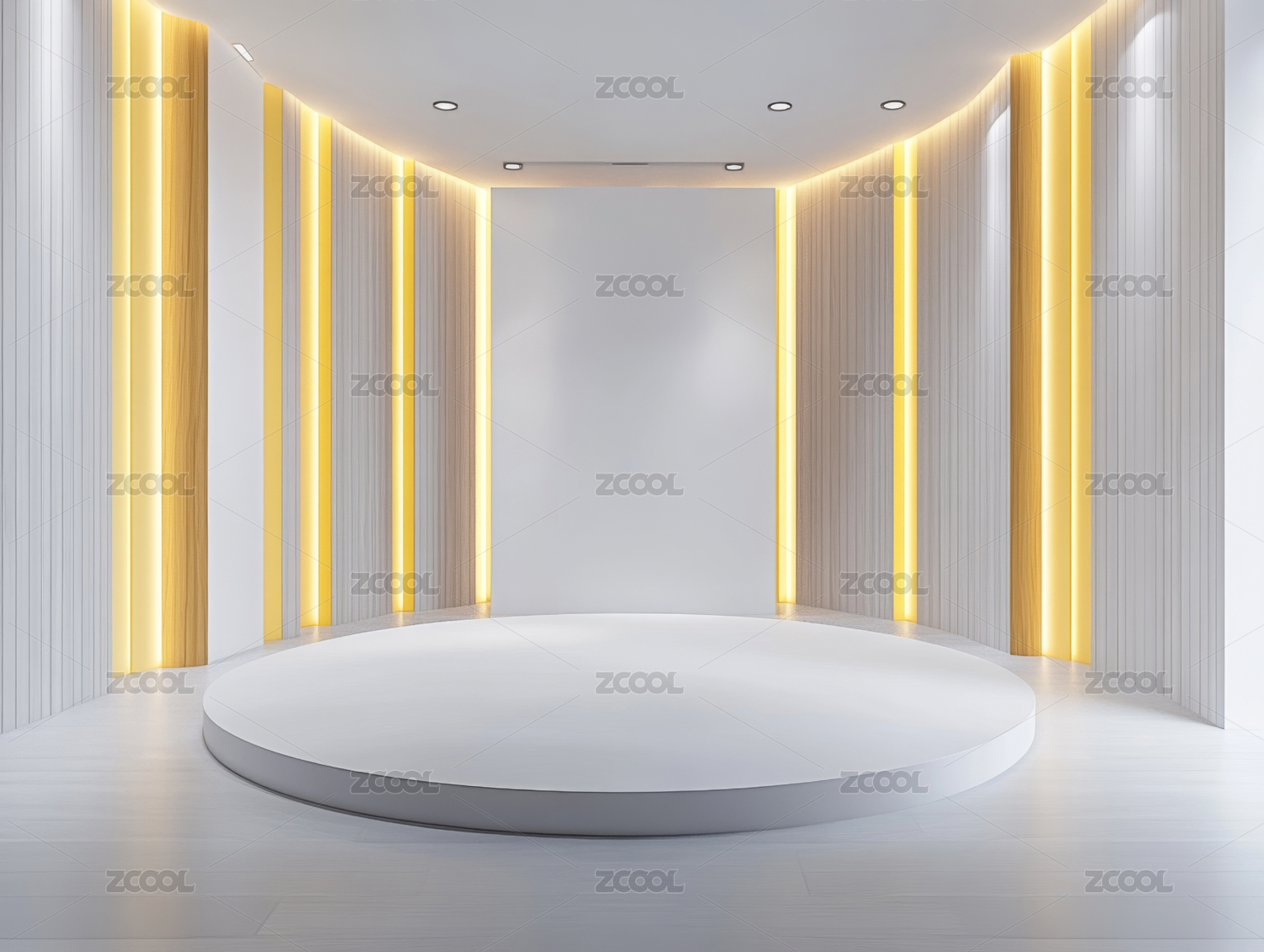 展示台,圆形,灯光,现代,室内,简洁,白色,设计
