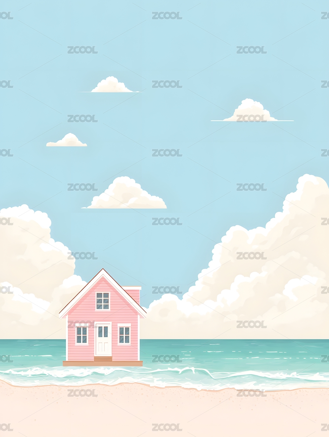 海边,小镇,房屋,蓝天,白云,沙滩,阳光,宁静,美丽