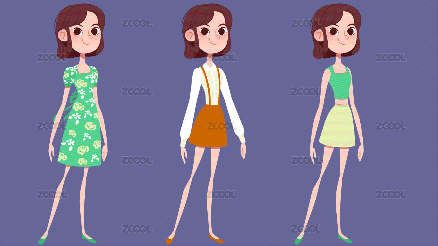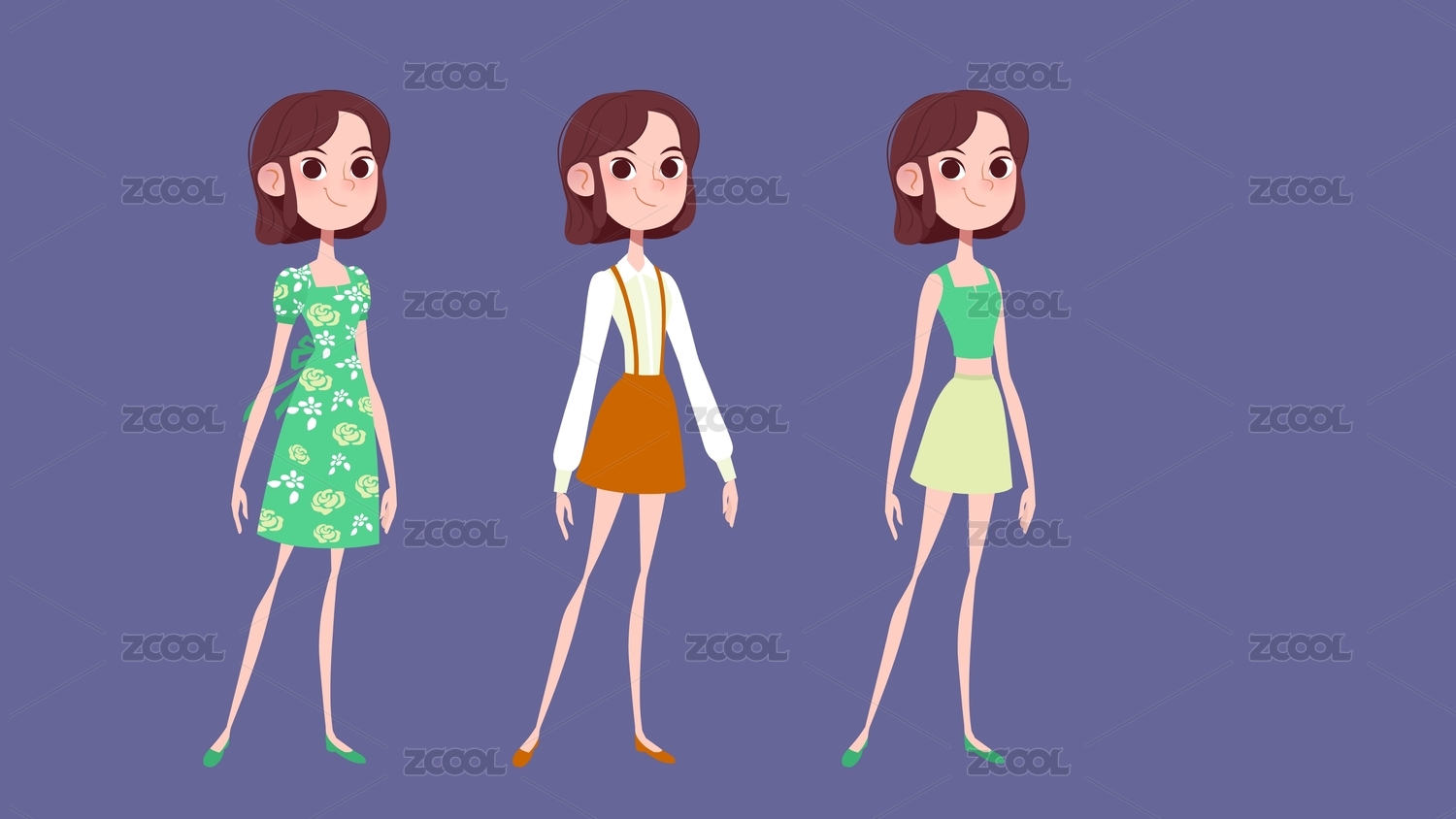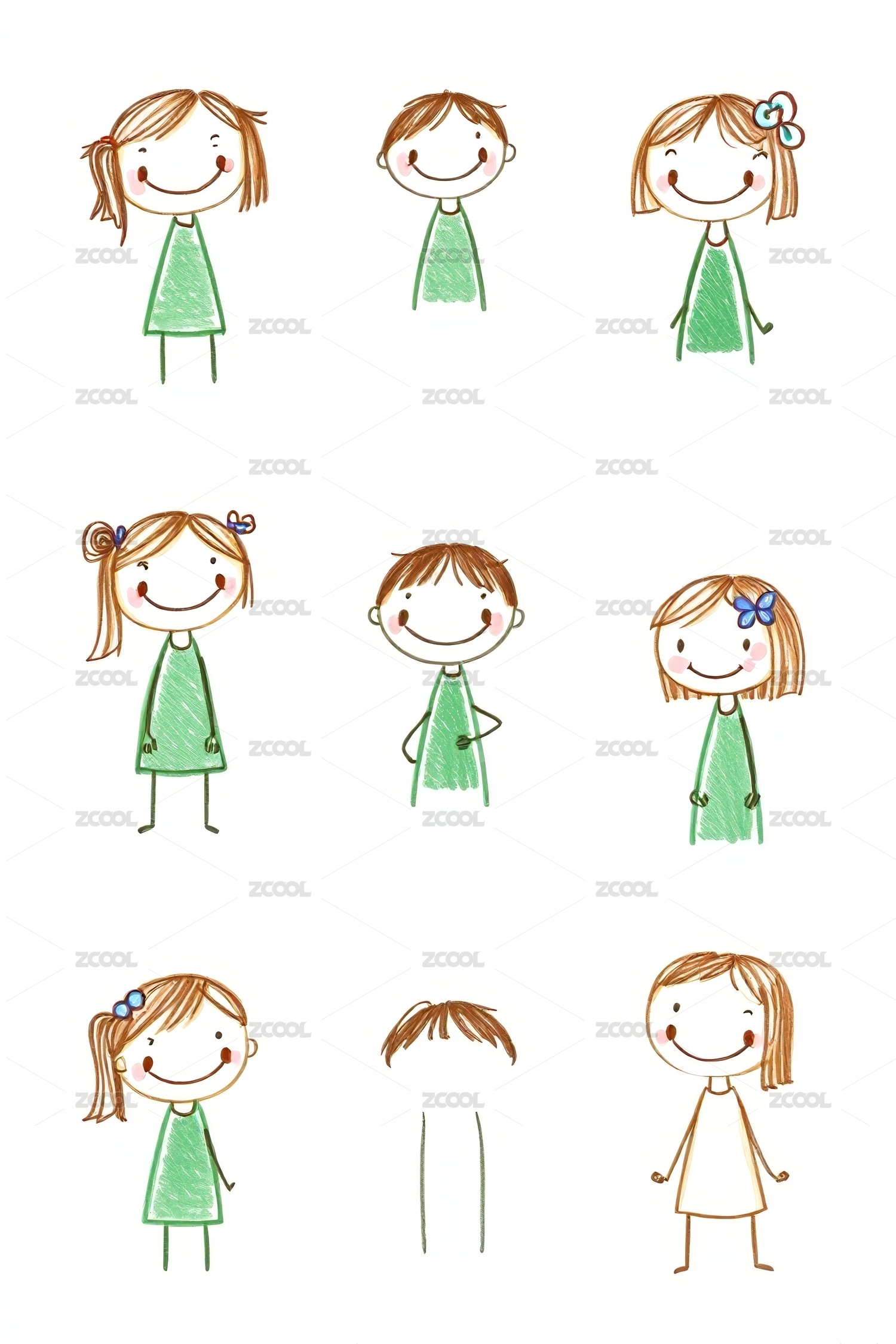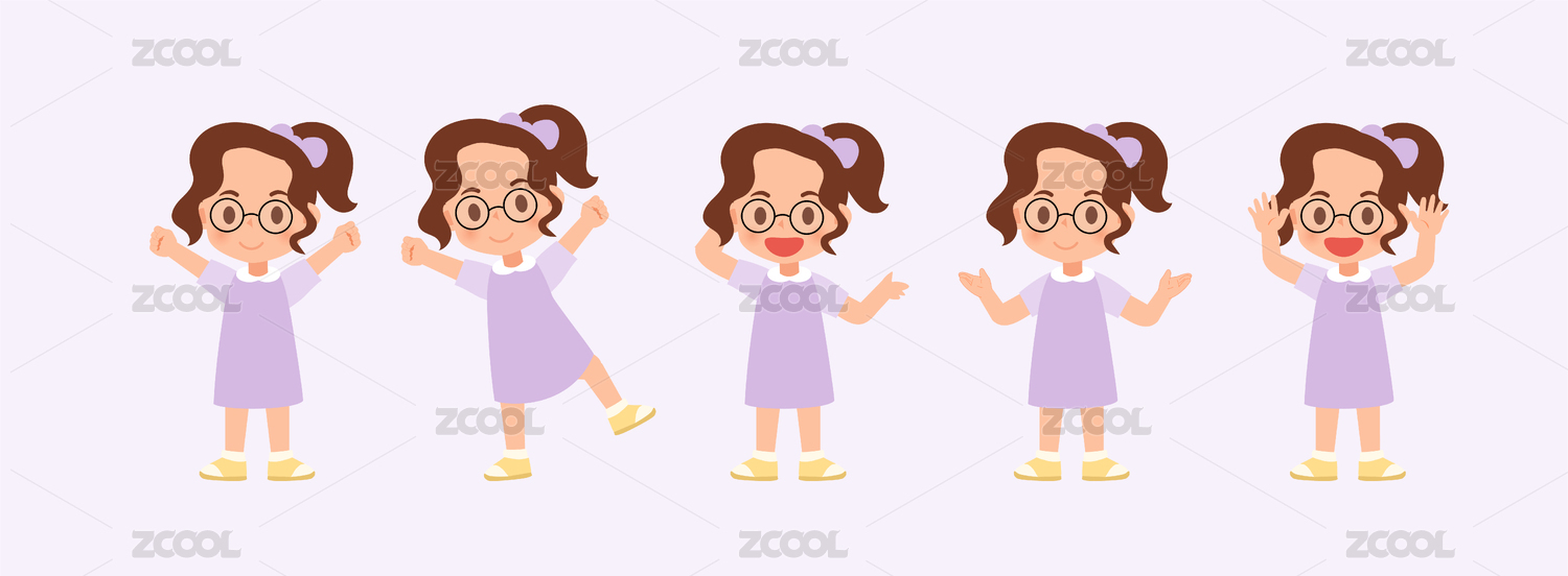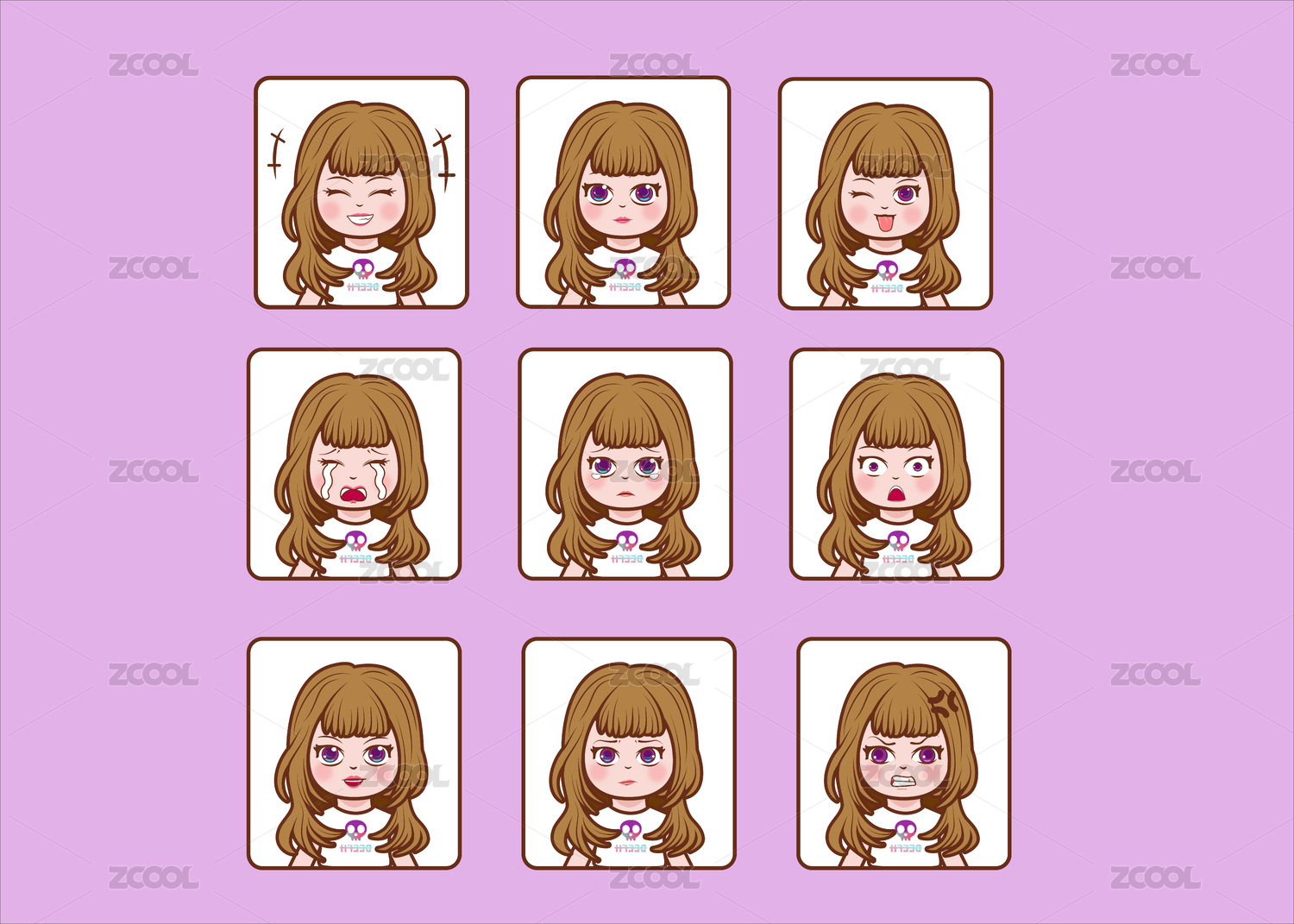 卡通人物设计女孩表情包设计萌萌哒矢量图