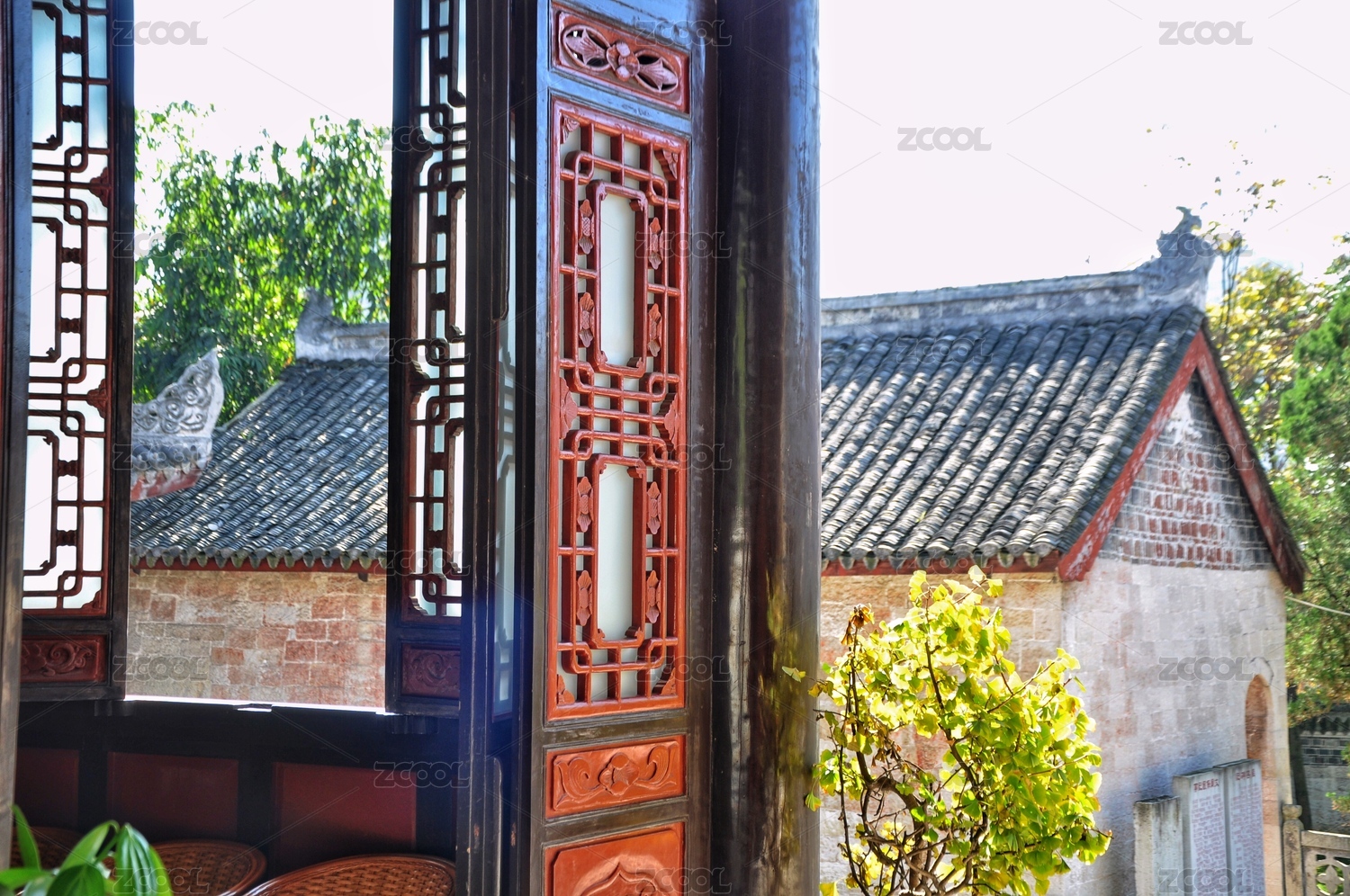 小女孩 台阶 传统建筑 门窗 石墙 庭院