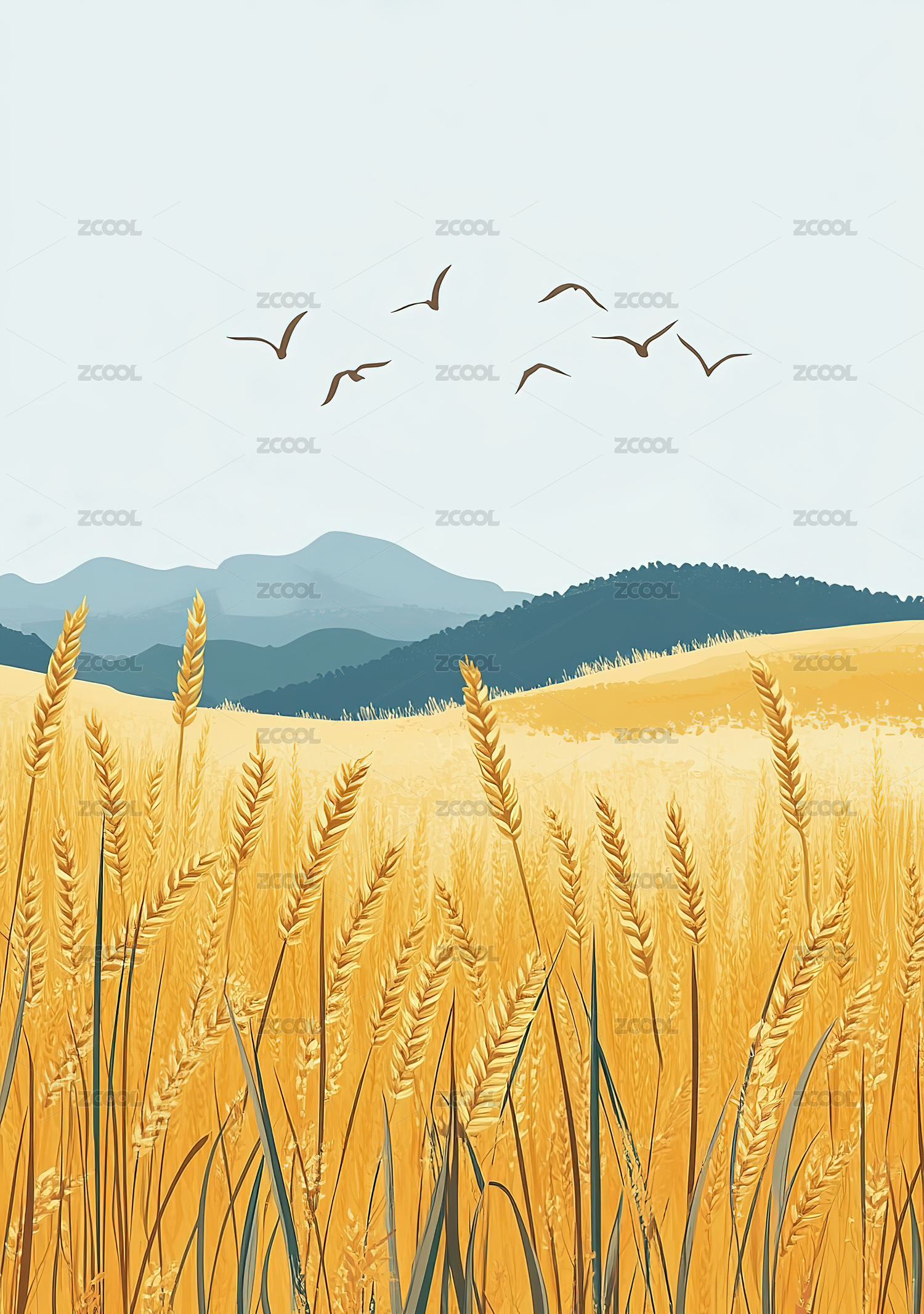 极简风秋天金黄的麦田插画
