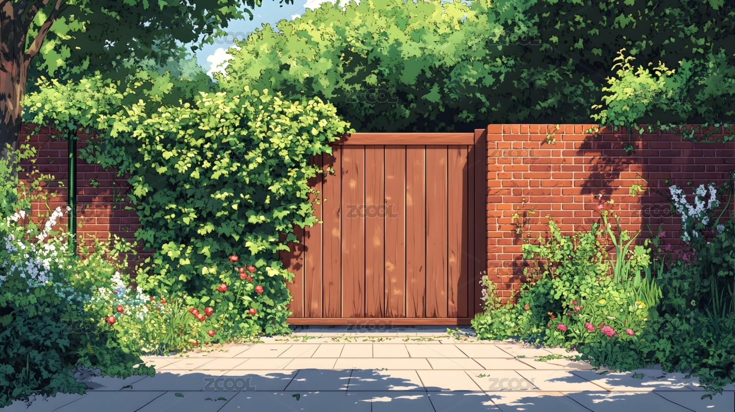 小清新门口花园新海诚插画