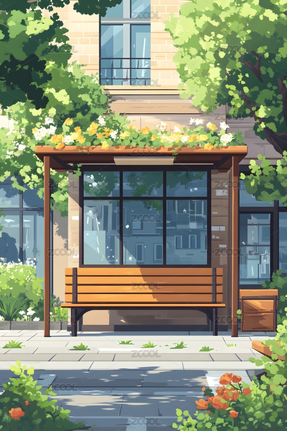 城市街道上的简约巴士车站