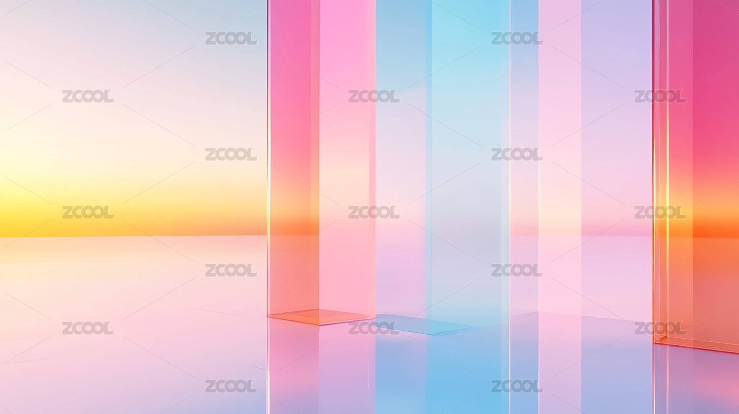 梦幻霓虹玻璃柱抽象艺术背景