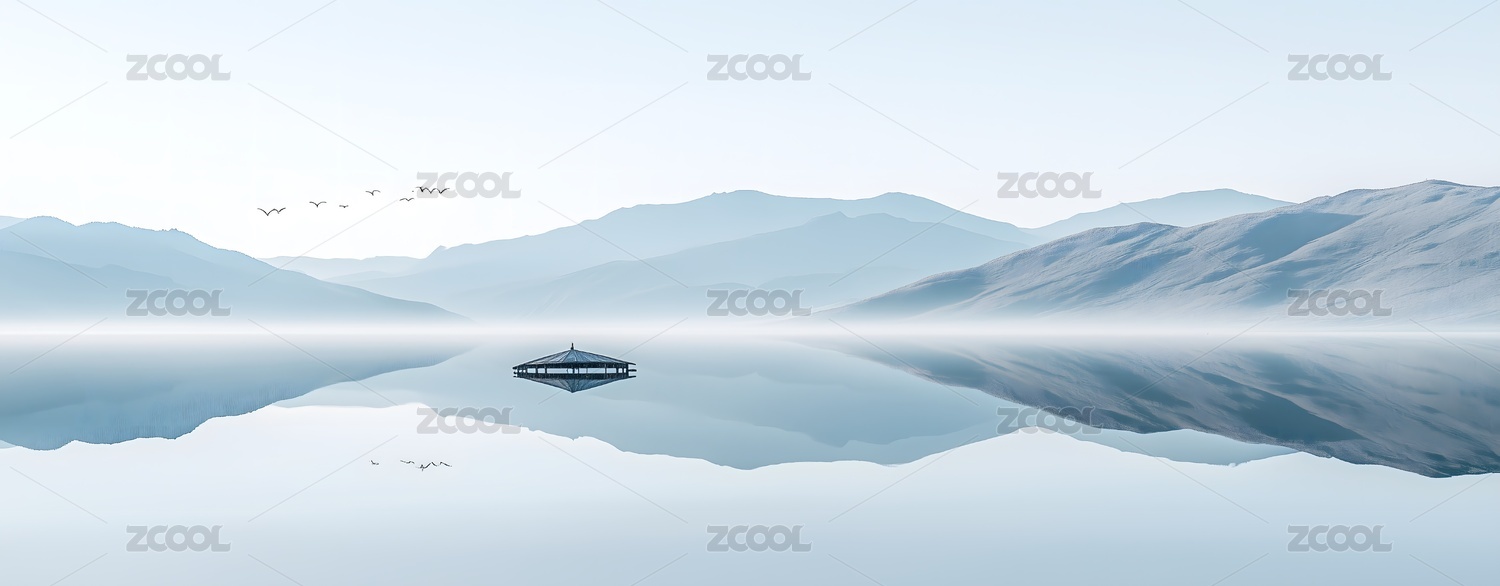 湖中孤舟背景