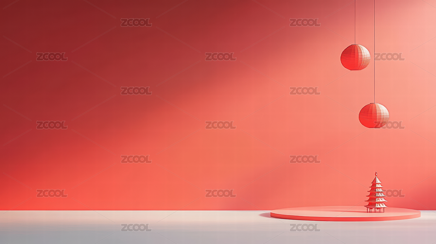 3D渲染红色场景背景创意产品陈列展台
