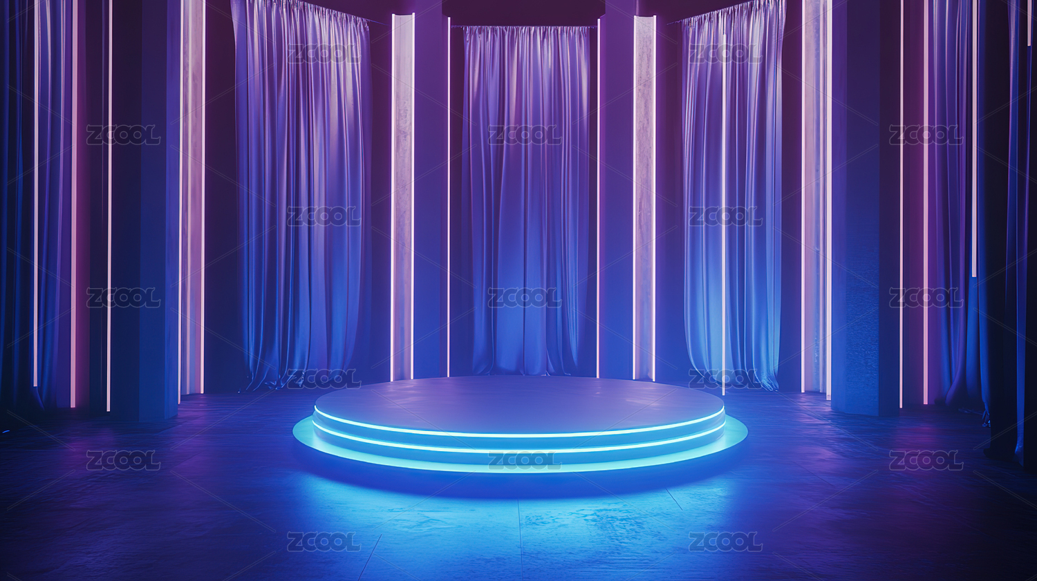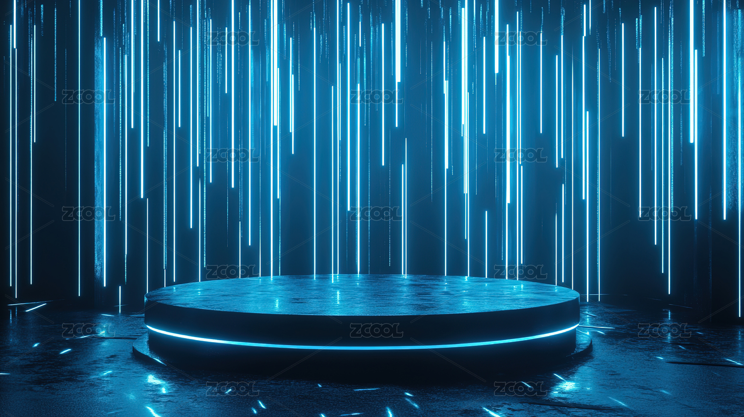 3D渲染科技风霓虹灯线条电商产品展台背景