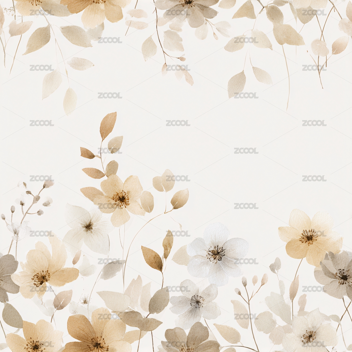 数码复古水彩黄色花朵装饰抽象图形海报背景