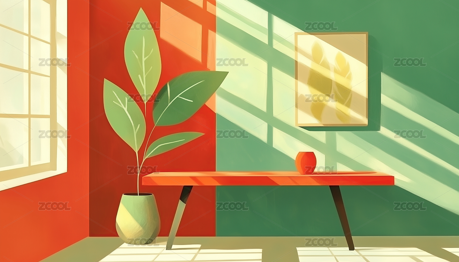 简约相框书桌台灯纯色背景商业广告海报壁纸