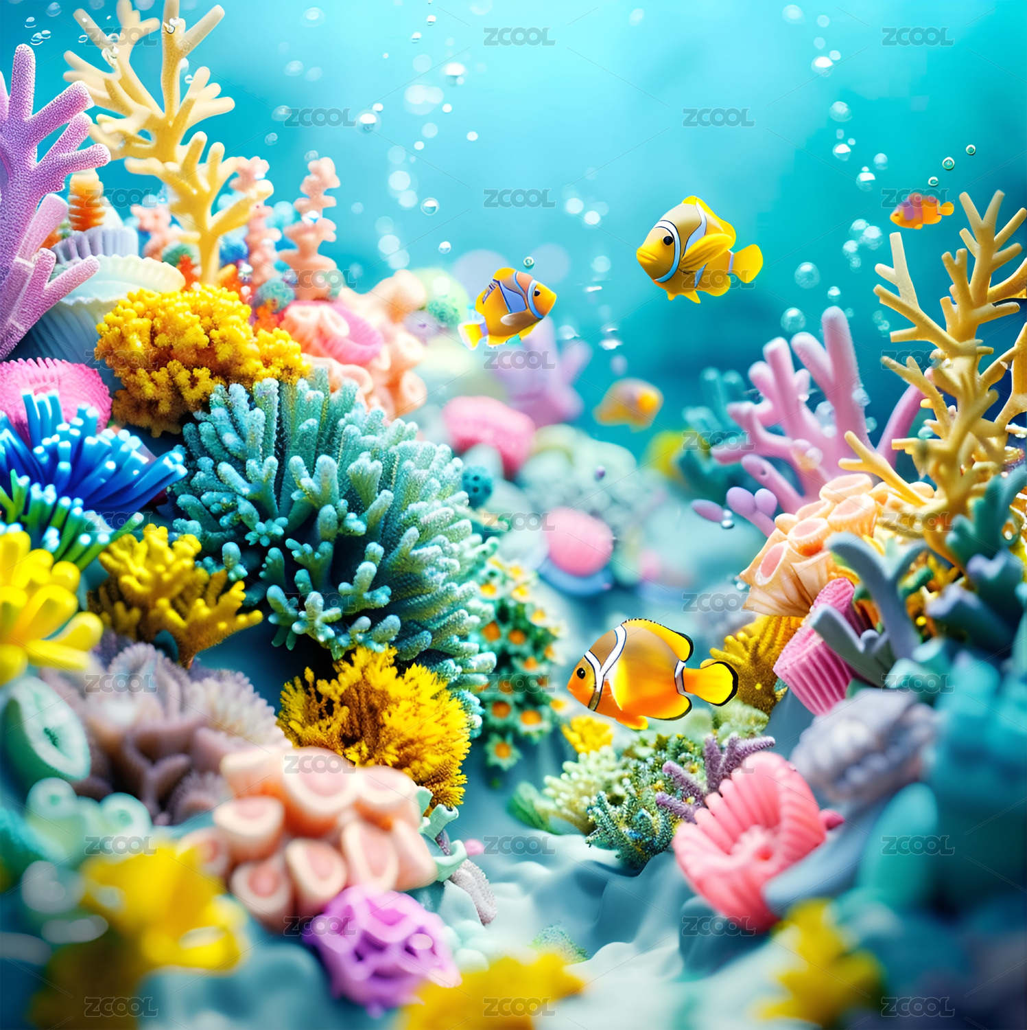 三维立体海底世界童趣珊瑚礁水草小场景背景