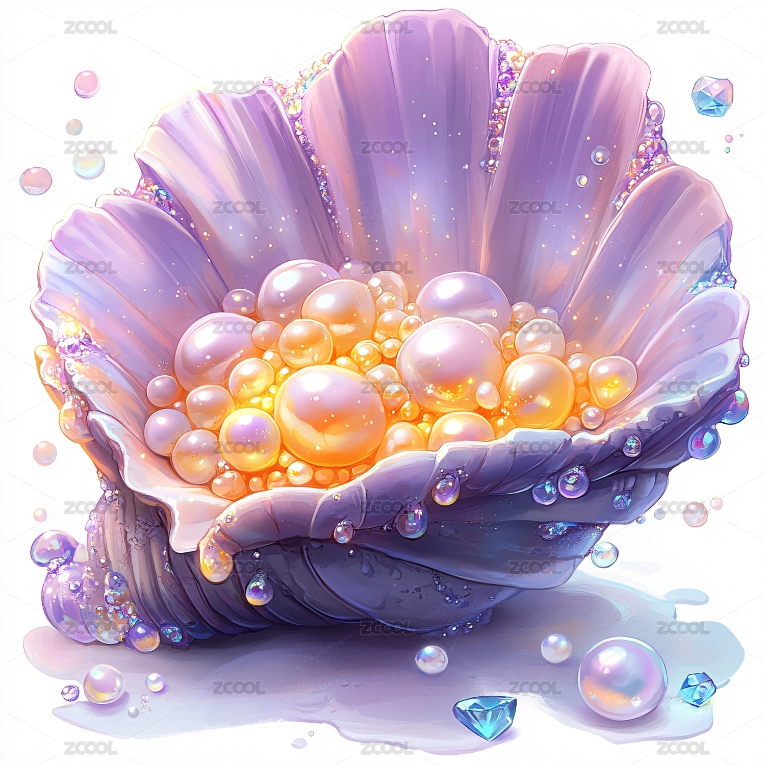 贝壳盛有珍珠与宝石