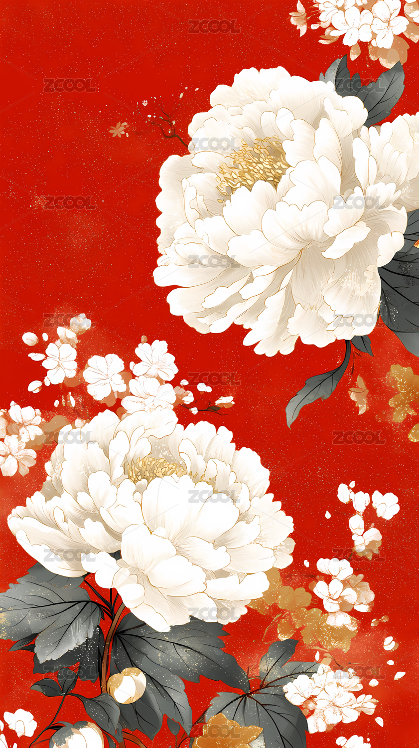 插画,背景,中国风,唯美,喜庆,国风,艺术,装饰,牡丹,花卉