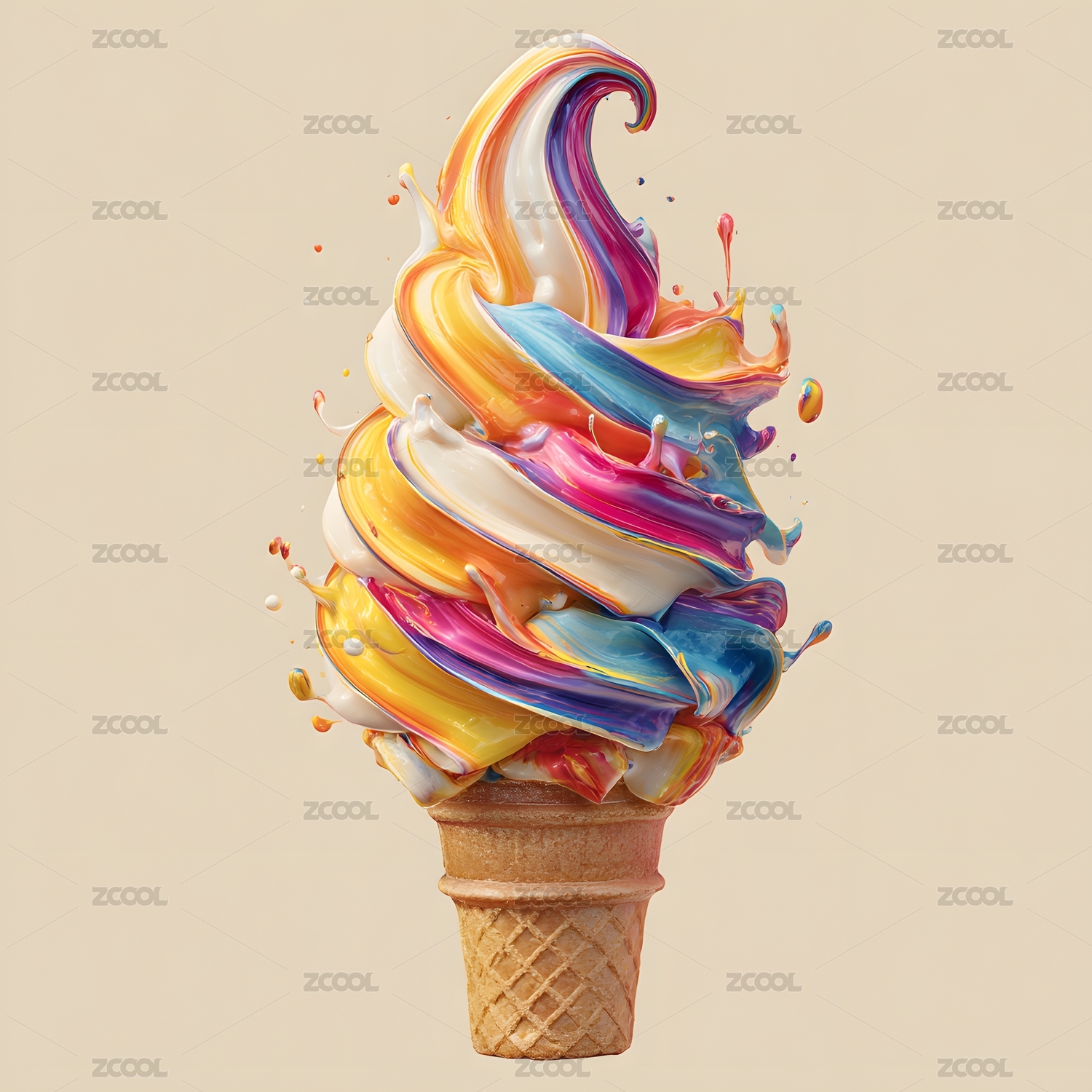 多彩液体螺旋状冰淇淋甜筒