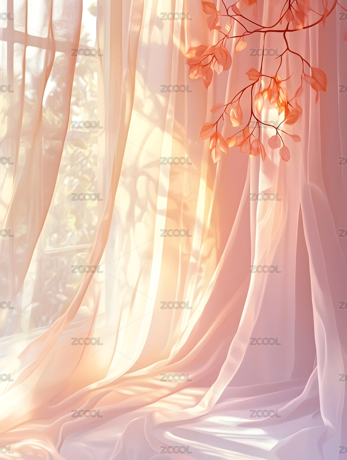 柔和阳光透过窗帘