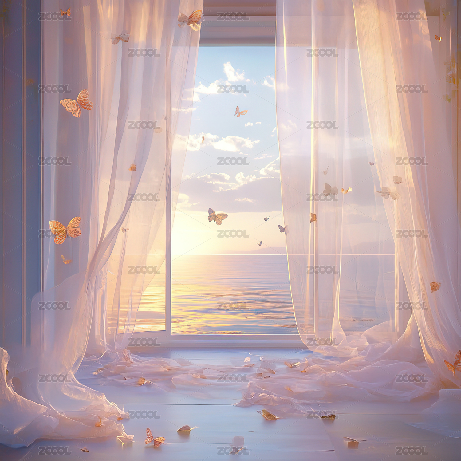 明亮通透窗帘微风房间