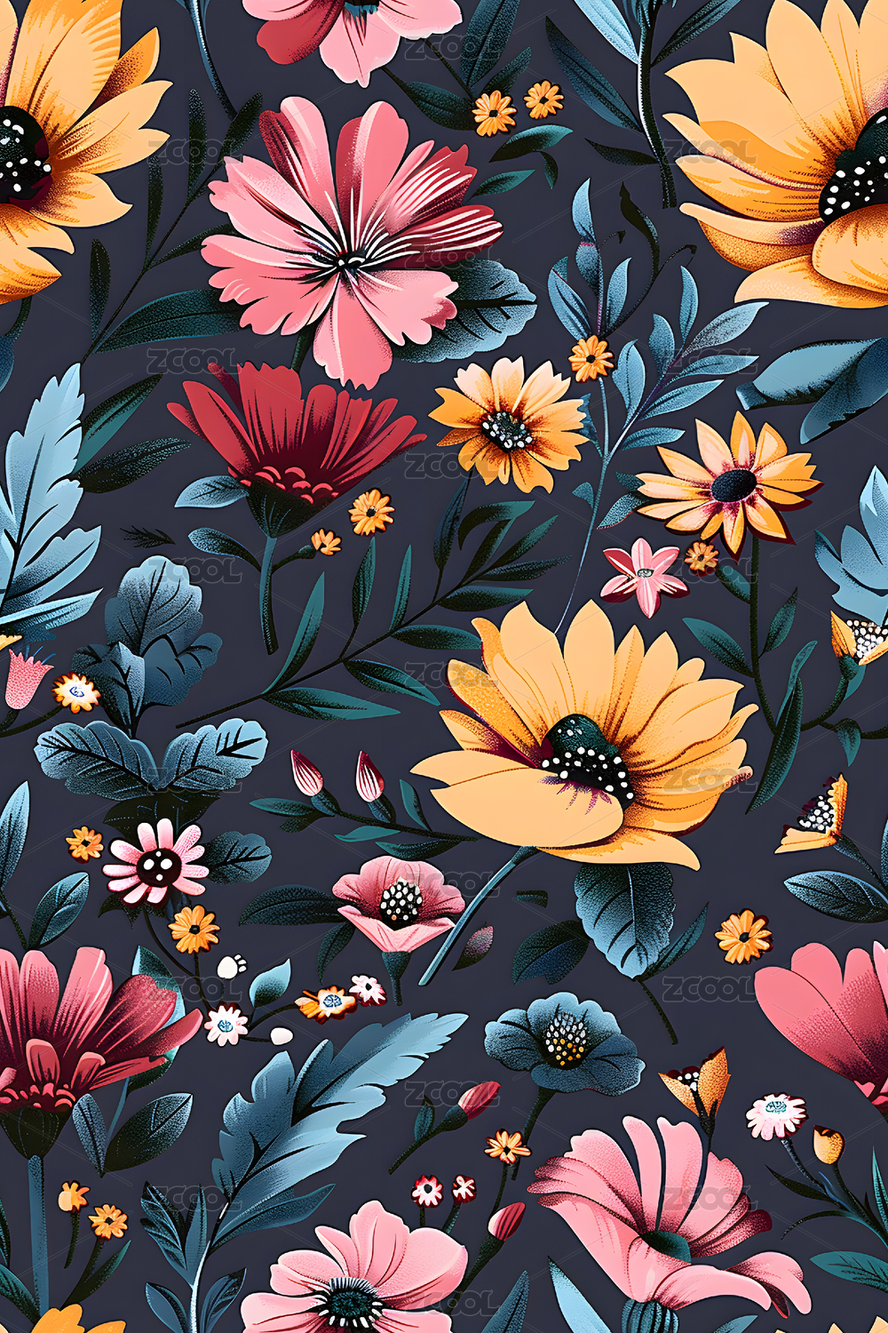 四方连续花草印花
