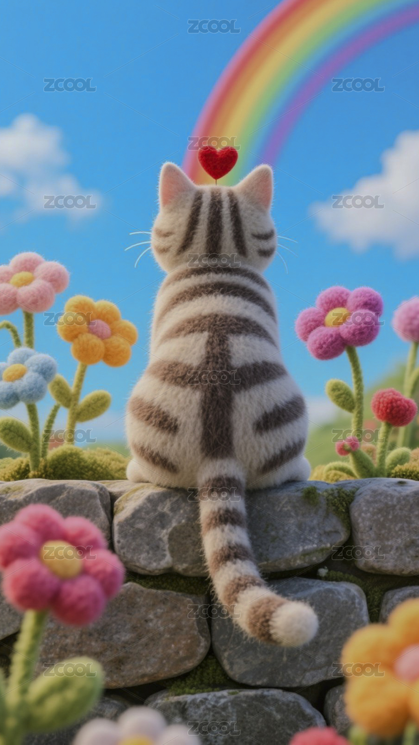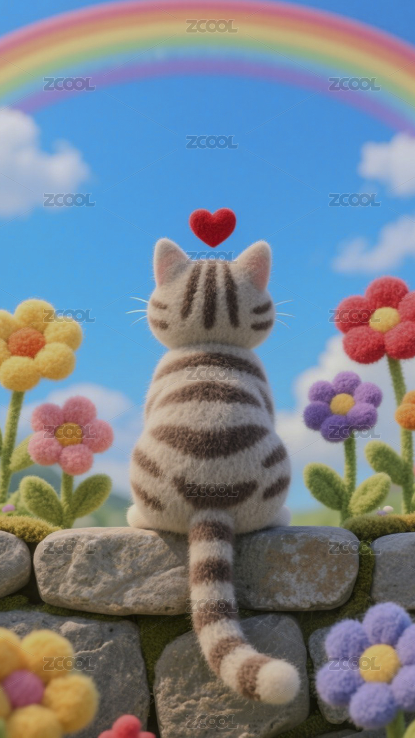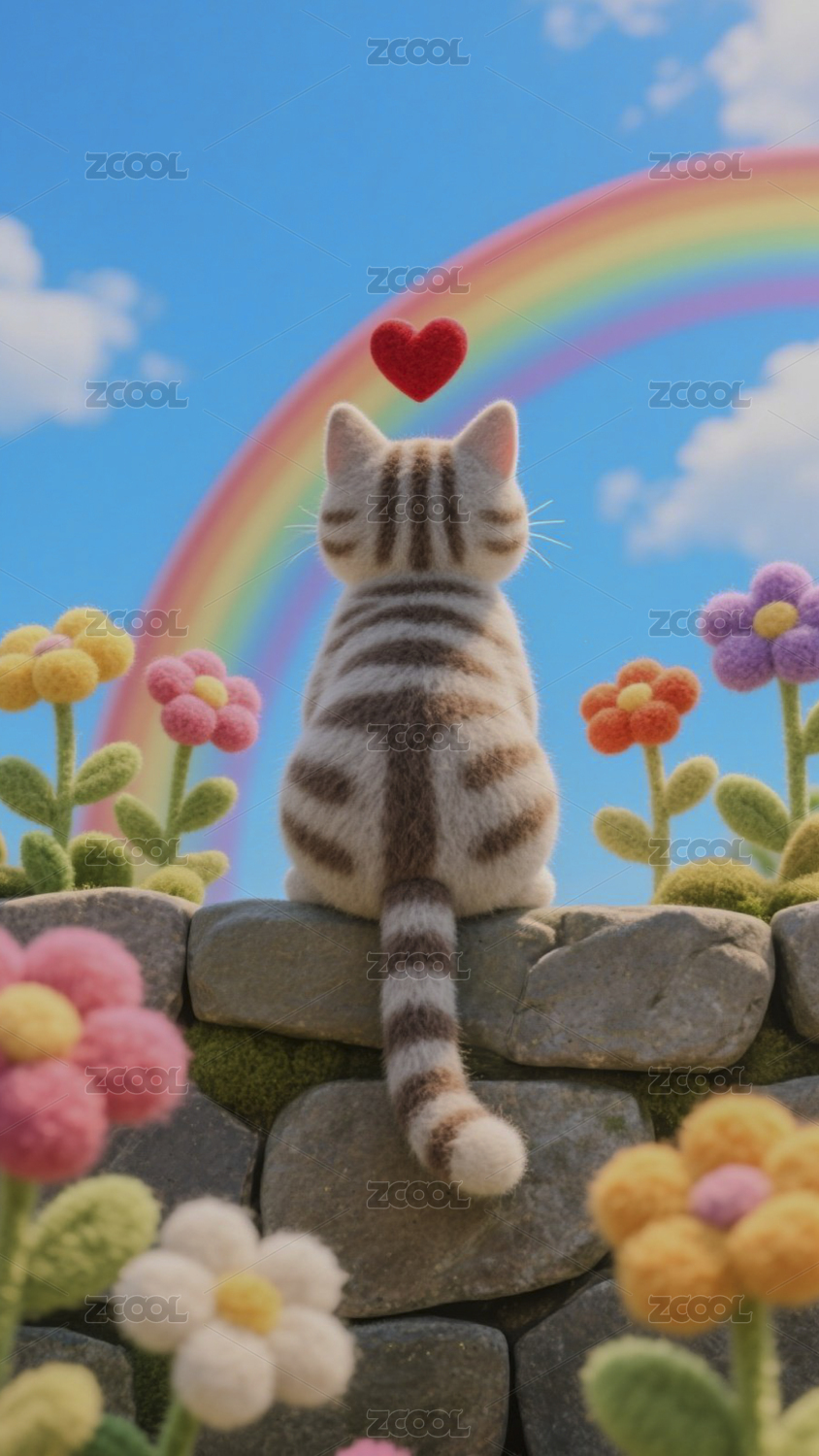 治愈系,壁纸,背景,卡通,可爱,鲜花,童趣,猫咪,萌宠,动物