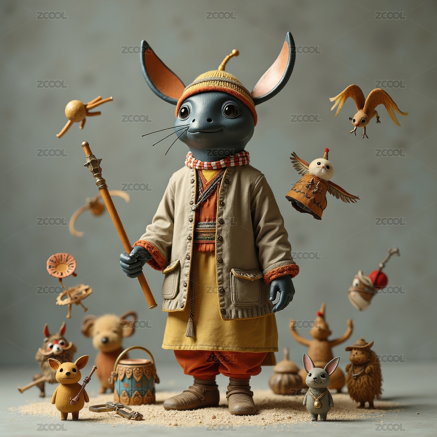 长鼻子长尾巴的卡通精灵高清图片
