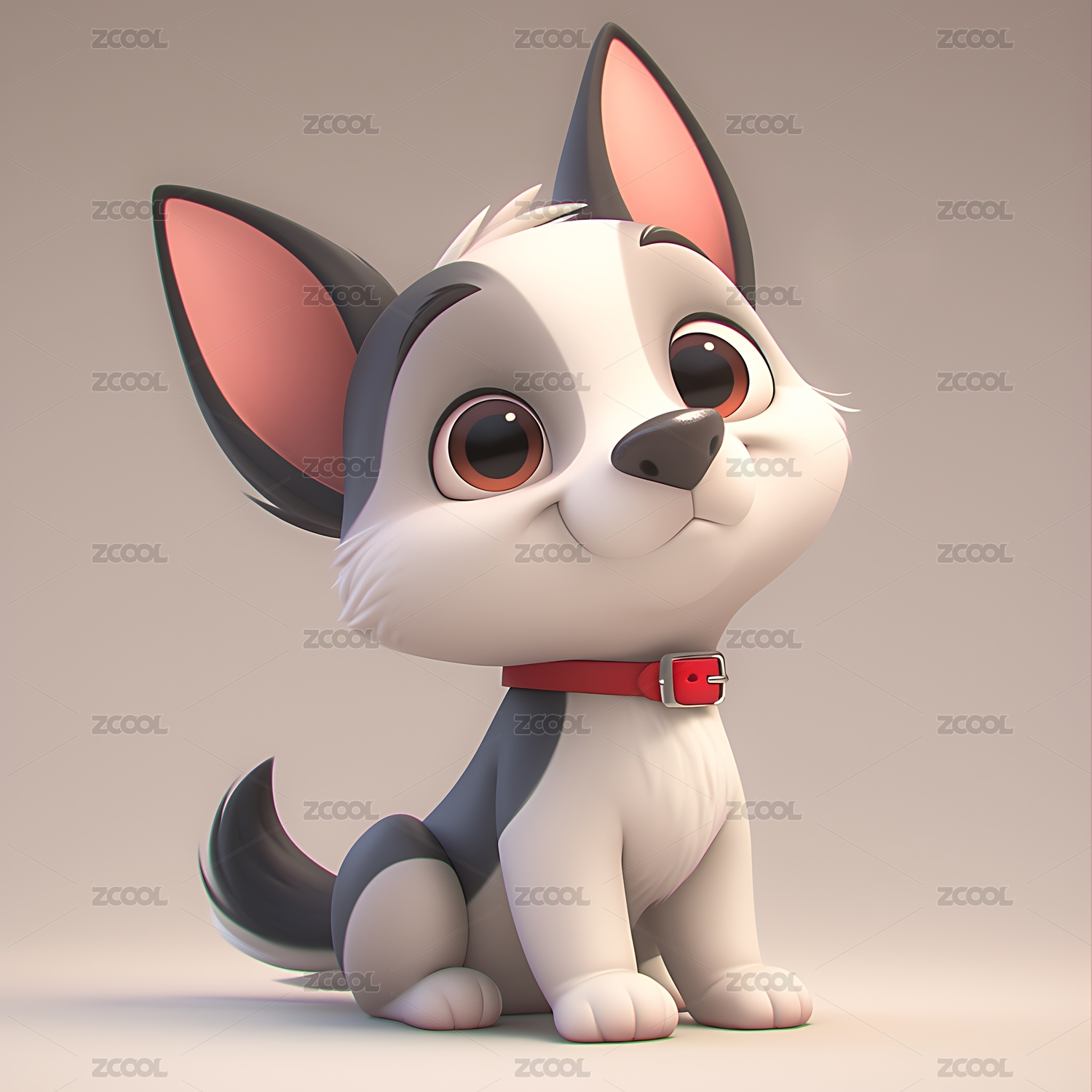 可爱的小狗3D插画,可爱的3D卡通宠物狗