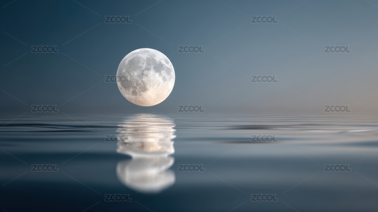 宁静, 唯美, 蓝色, 天空,月亮, 海面, 夜晚, 孤独, 大海, 身影