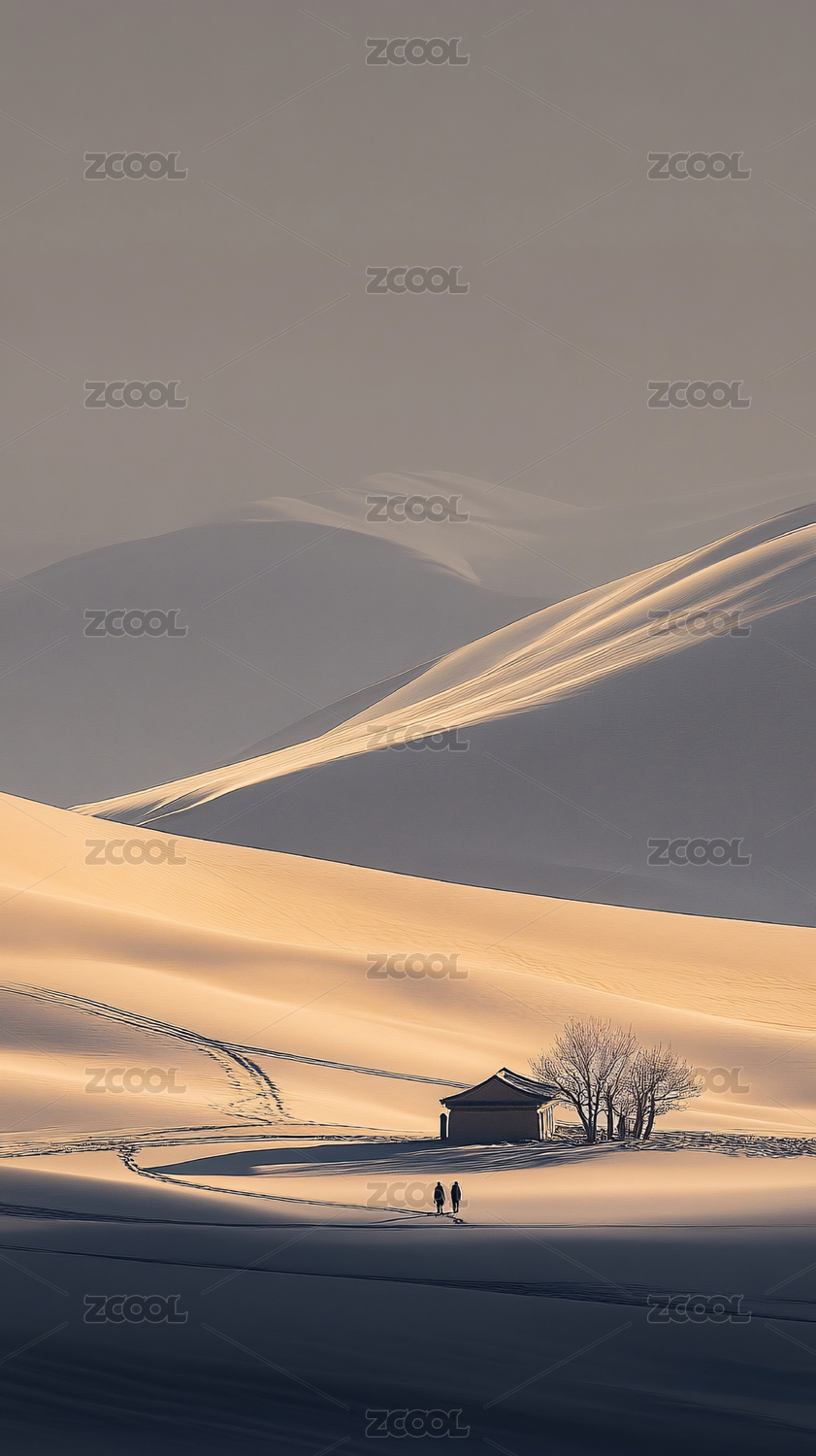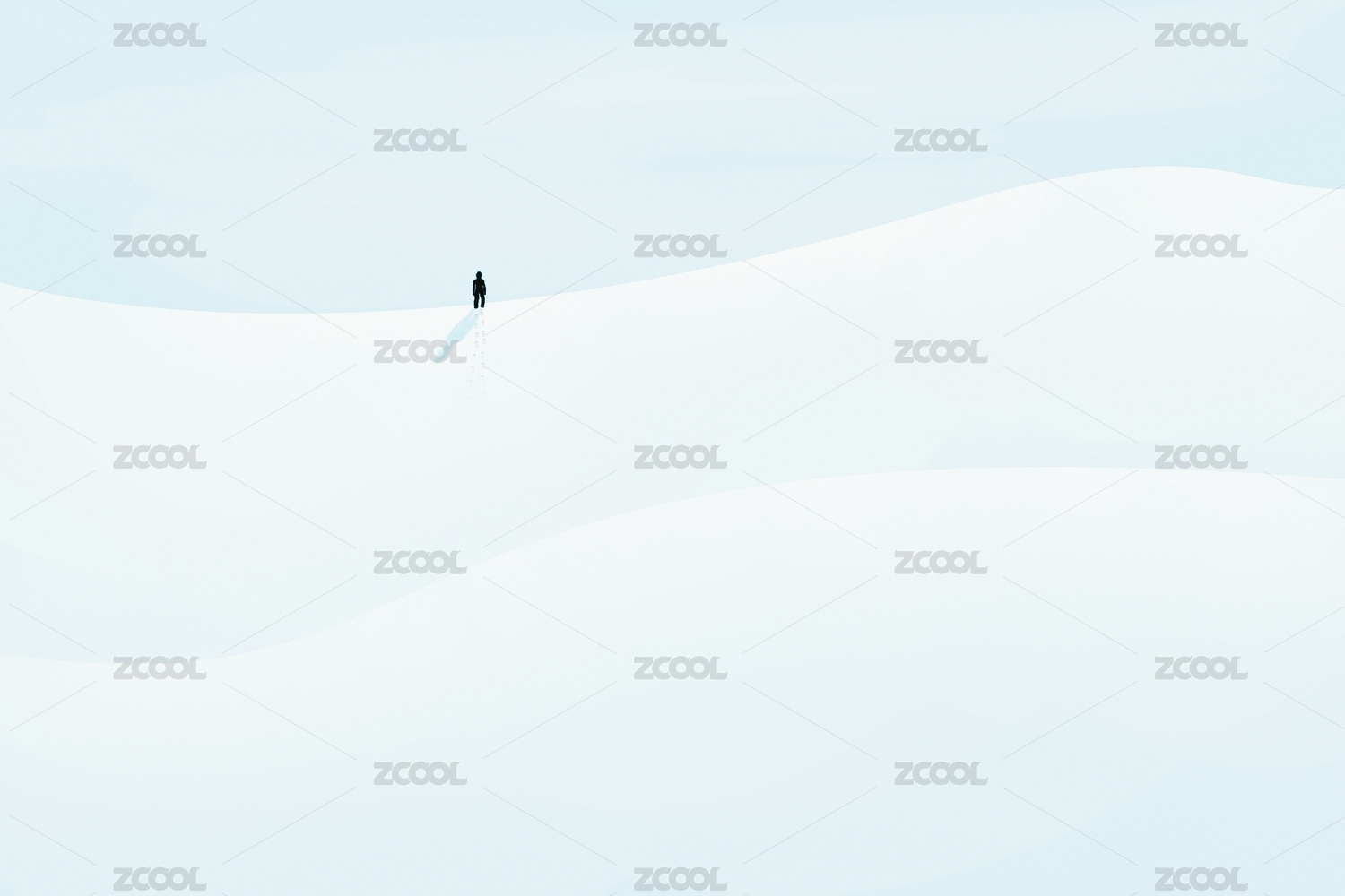 远景,极简,简单,极简风格,极小的人,大面积留白,蓝色,抽象,简约,山脉