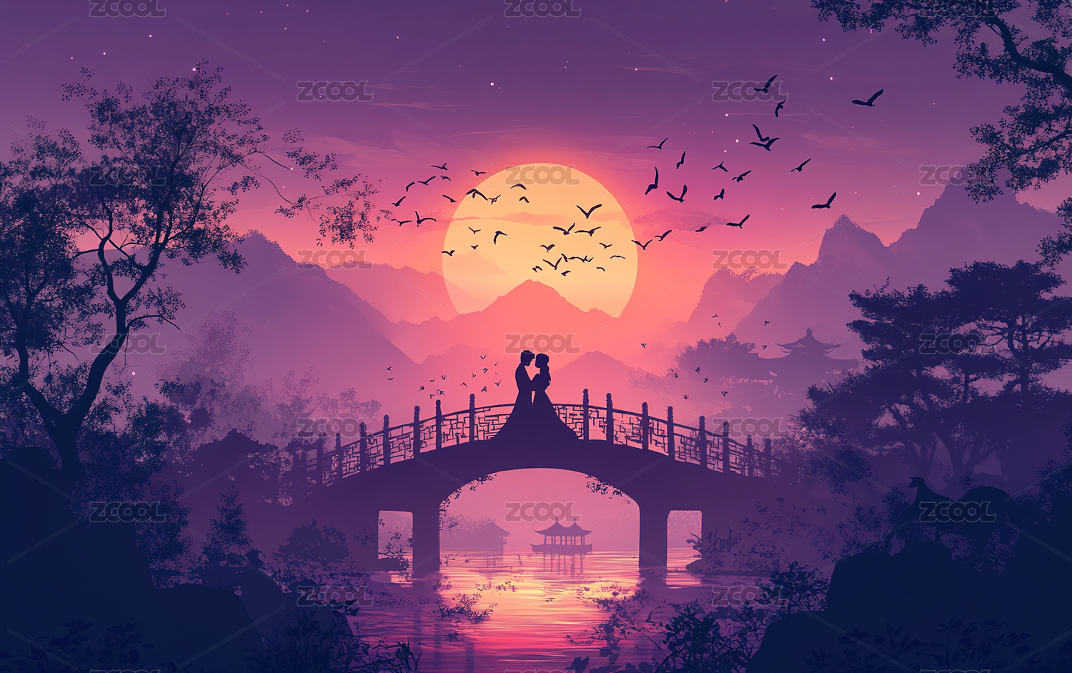 七夕浪漫月光下约会的情侣