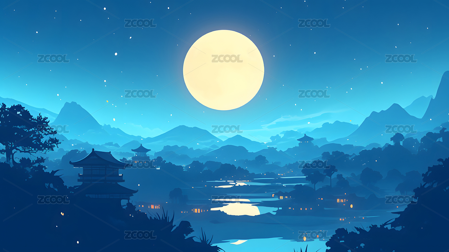中秋节圆月风景背景插画