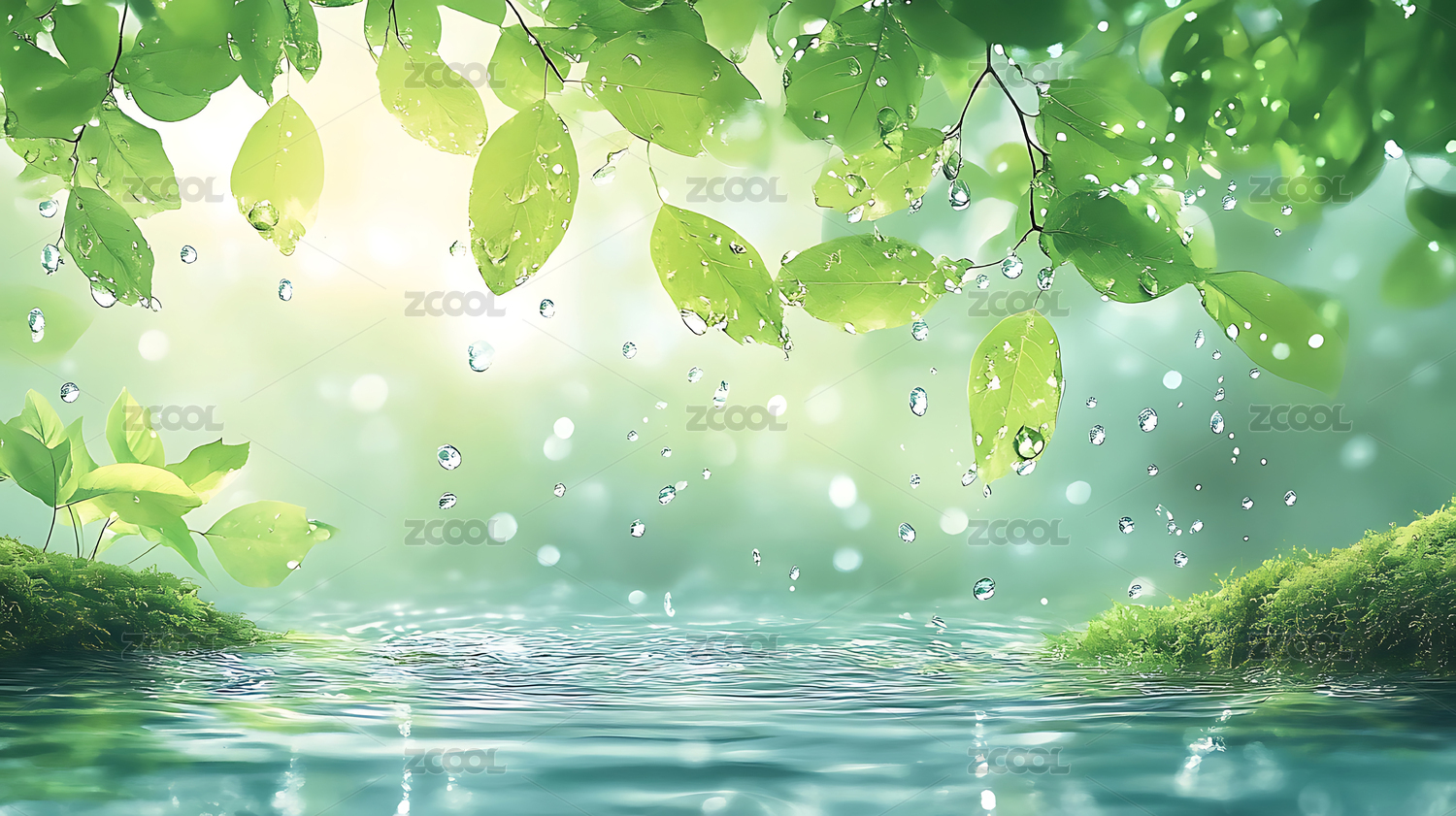 唯美的自然水上绿叶